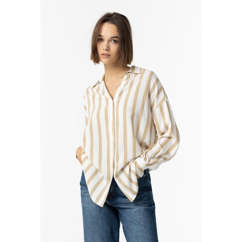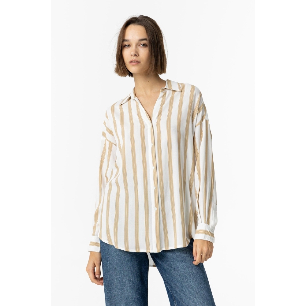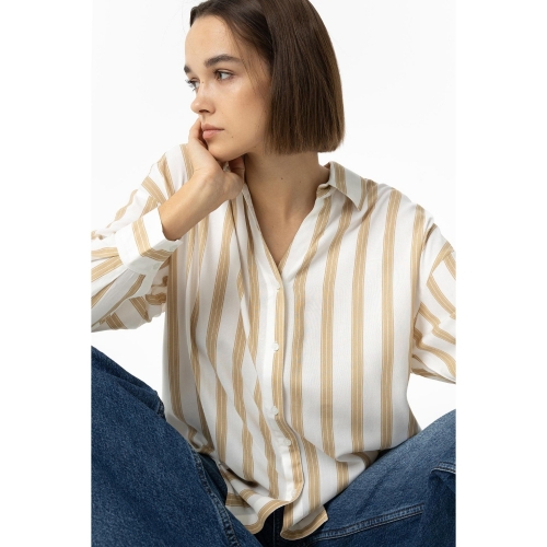 Camisa oversize a rayas con cuello de solapa y manga larga. Cierre frontal con botones.100% VISCOSE