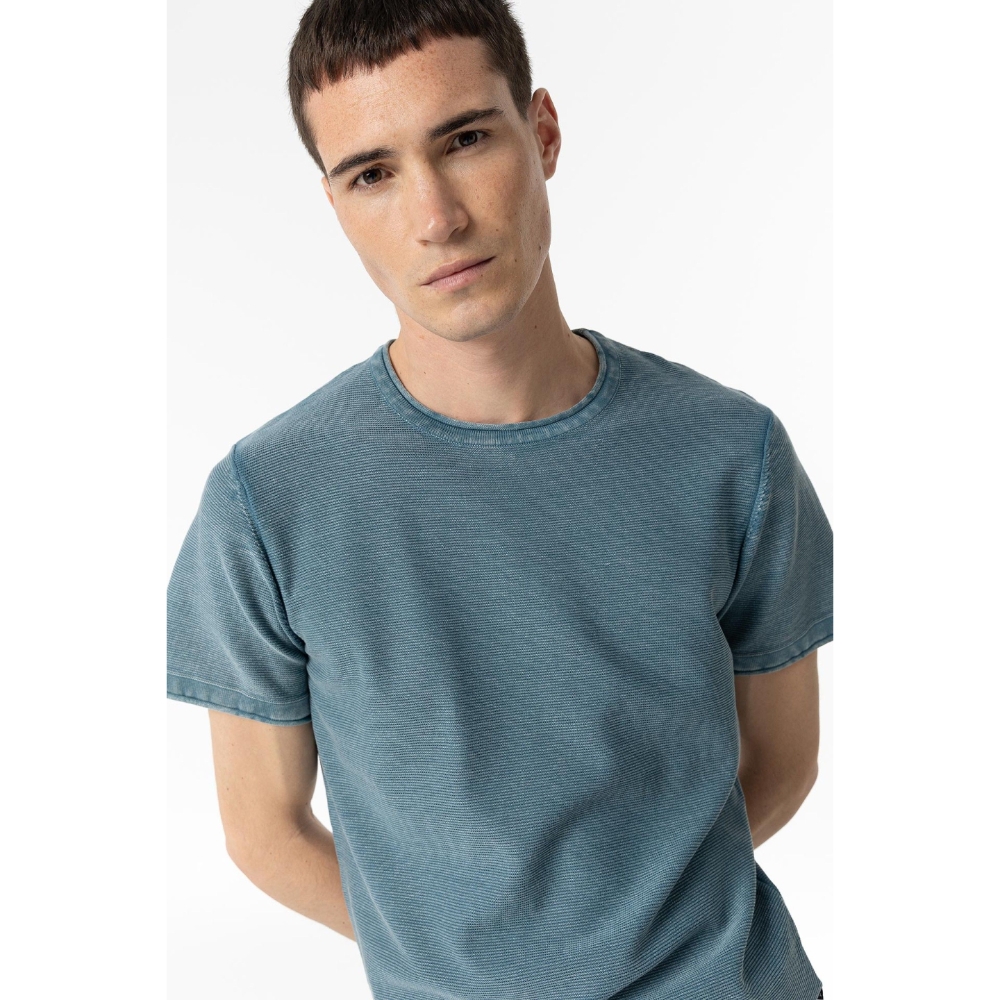 Camiseta slim fit de cuello redondo y manga corta. Escote en rib.100% COTTON