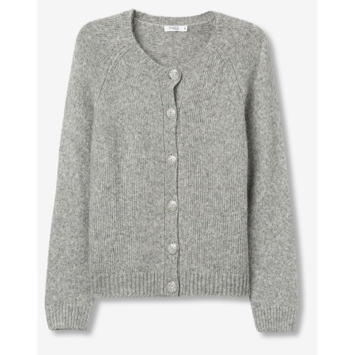 Cárdigan de manga larga con cuello redondo. Cierre frontal de seis botones con piedras decorativas. Punto texturizado de patrón fino. Puños y bajo en rib.63% ACRYLIC 30% POLYAMIDE 7% ALPACA