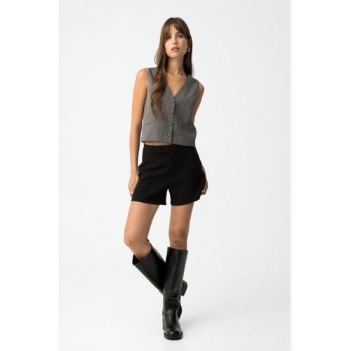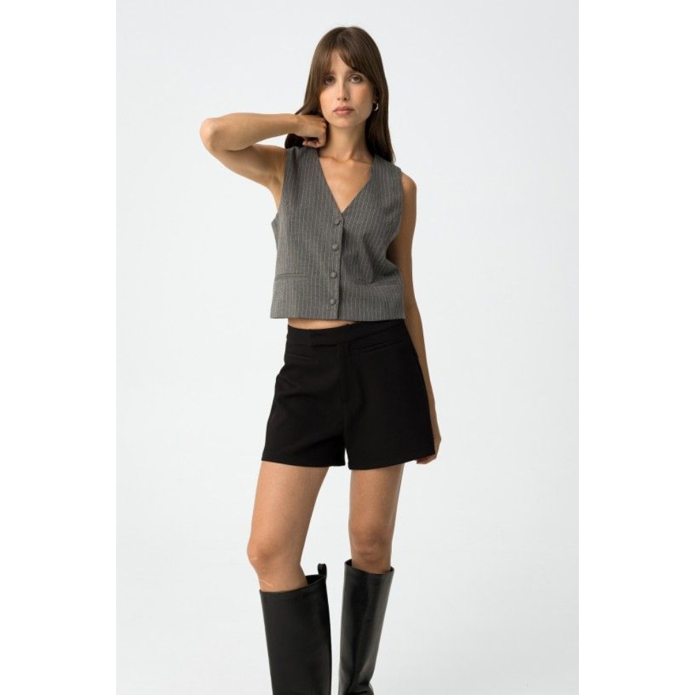 Top chaleco slim fit con estampado a rayas, dos vivos decorativos y cierre de botón. Escote en V y sisa.64% POLYESTER 34% VISCOSE 2% ELASTANE
