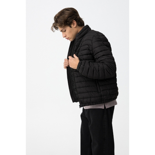 Chaqueta regular fit acolchada, con dos bolsillos frontales y cierre de cremallera. Manga larga y acabado interior elástico en bajo y puños.