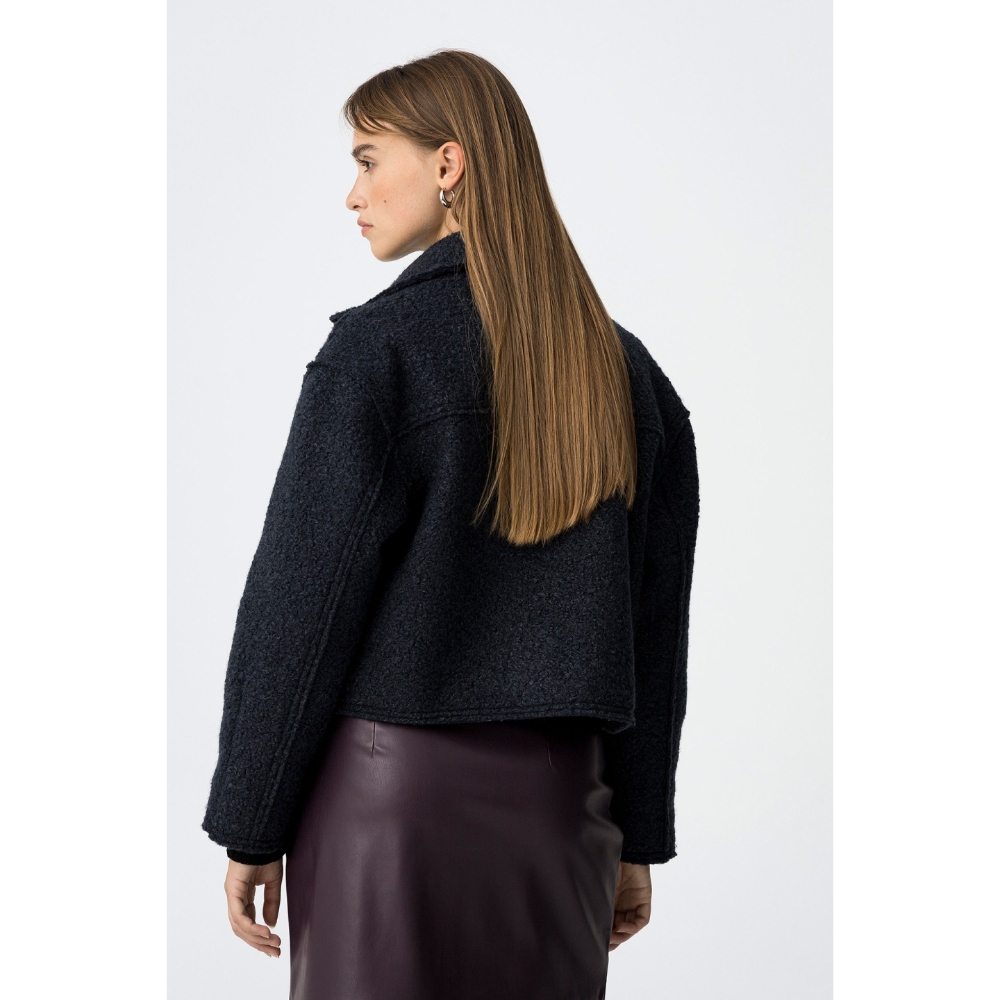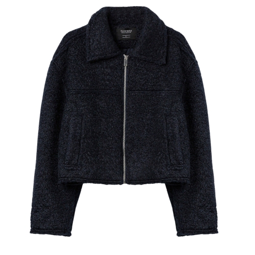 Chaqueta corta bouclé, relaxed fit, con dos bolsillos de ribete delanteros. Cuello, abertura frontal con cierre de cremallera y manga larga.100% POLYESTER