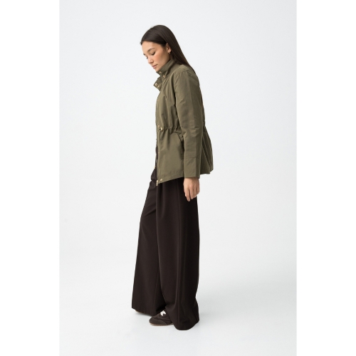 Chaqueta verde de corte regular con cierre de botones y cintura ajustable con cordón. 60% POLIÉSTER 40% ALGODÓN