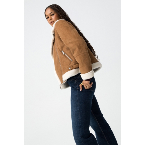 Chaqueta regular fit de efecto ante combinada con pelo sintético, con dos bolsillos delanteros y presillas decorativas. Cuello camisero, cierre de cremallera diagonal y manga larga.