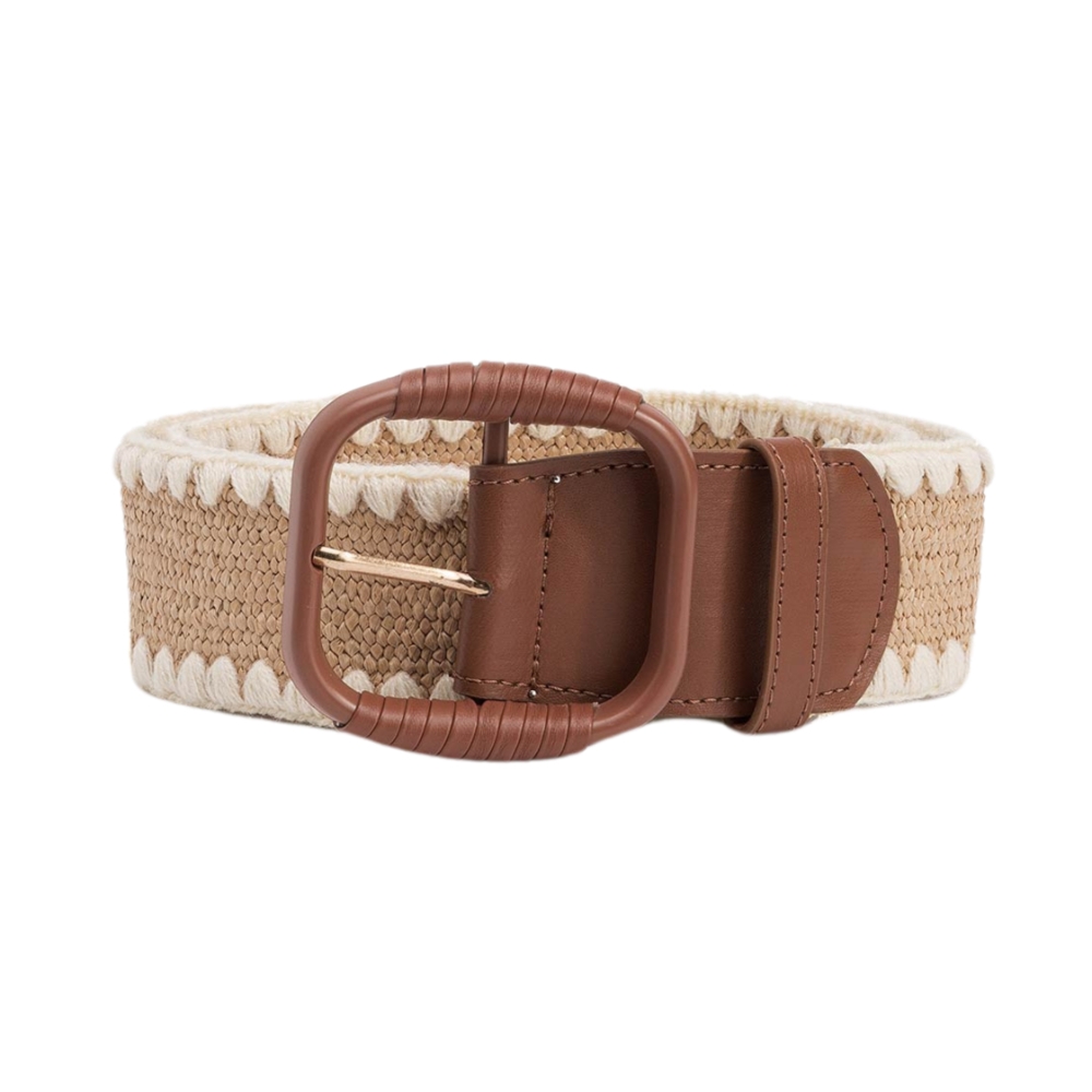 Cinturón combinado efecto paja, con efecto piel a contraste y hebilla redondeada.40% POLYPROPYLENE 40% ELASTANE 10% COTTON 10% POLY