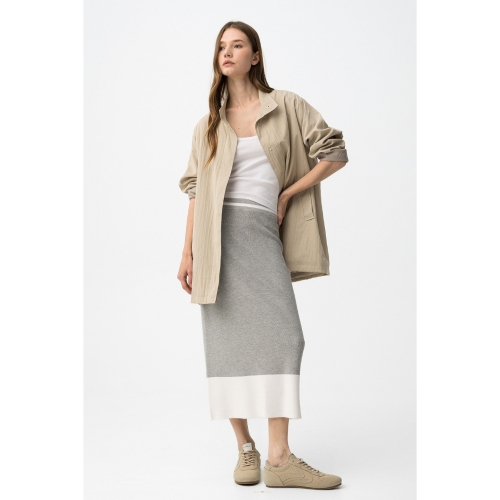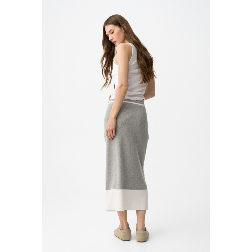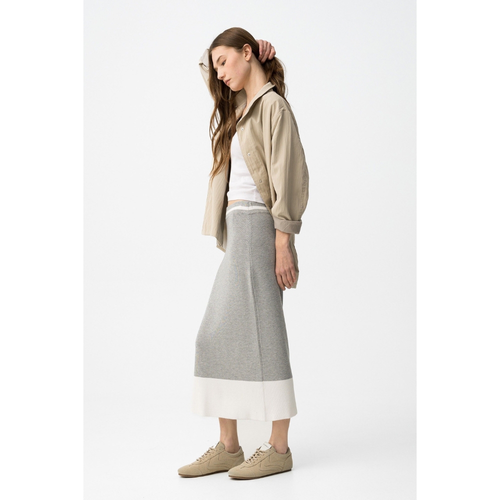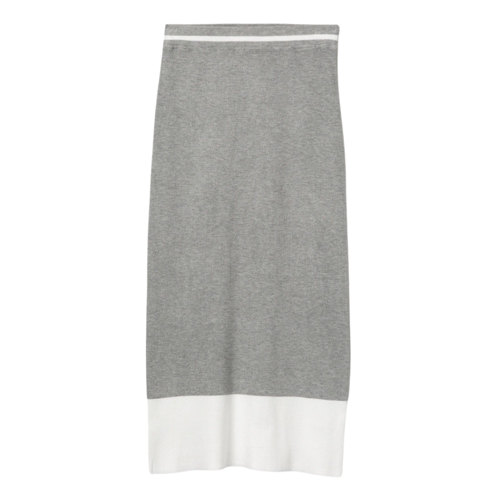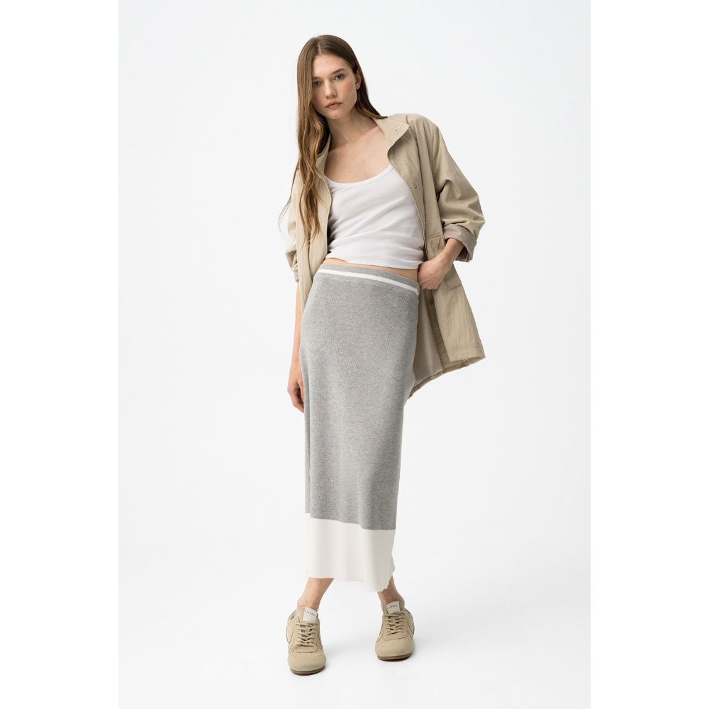 Falda midi de corte recto en gris claro con banda blanca ancha en el bajo, estilo casual.80% VISCOSE 20% POLYAMIDE