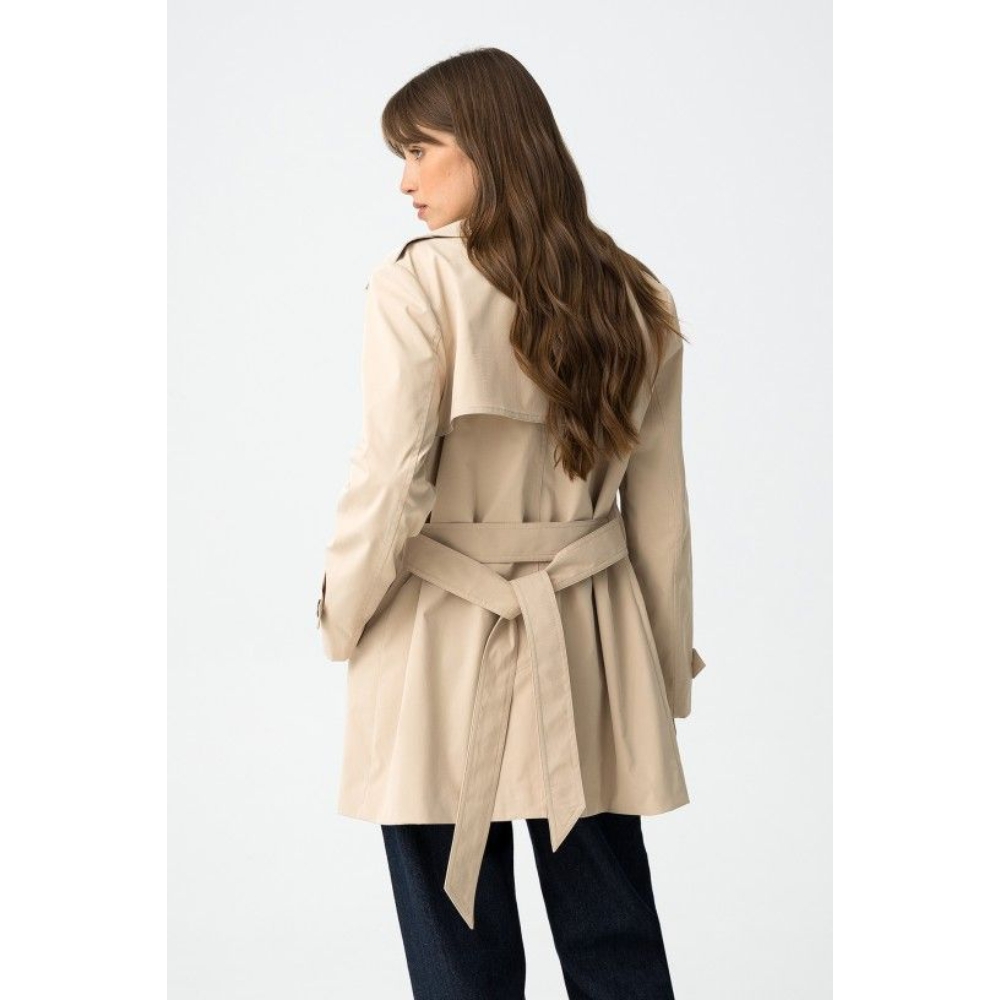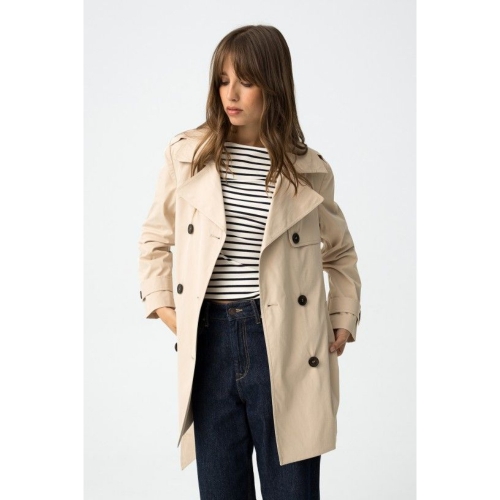 Gabardina regular fit, con cinturón removible y dos bolsillos frontales. Cuello con solapa dentada, cruzado doble con cierre de botón y manga larga.100% POLYESTER