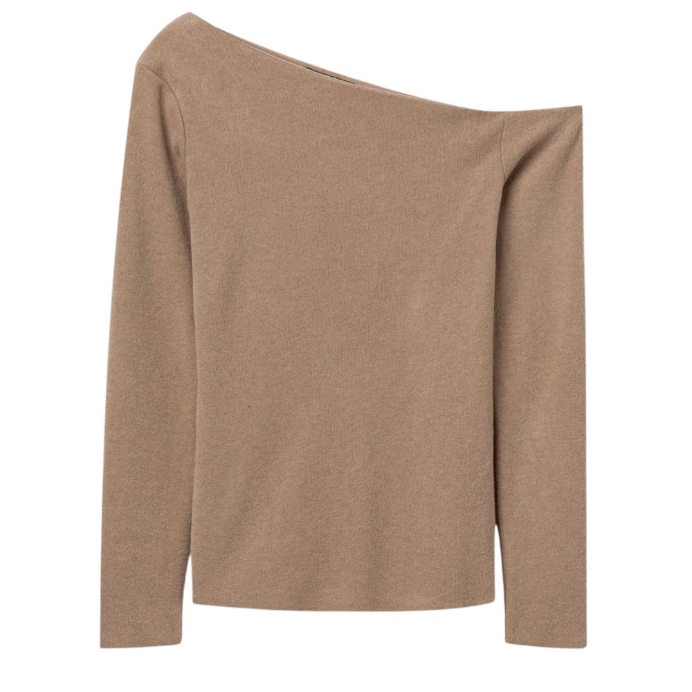 T-shirt de manga larga con corte asimétrico: hombro derecho al descubierto y manga en el lado izquierdo. Cuello ancho y asimétrico.84% POLYESTER16% ELASTANE