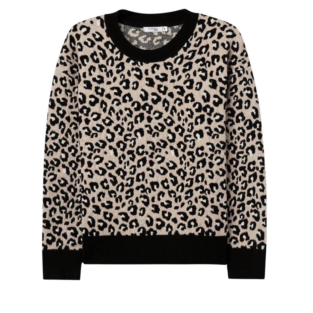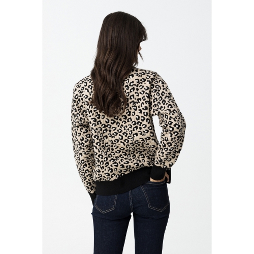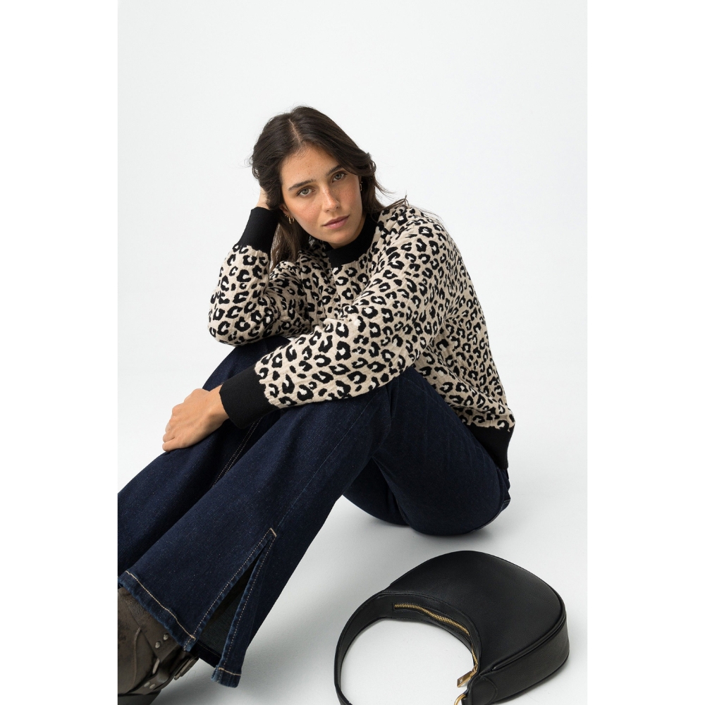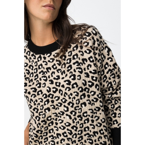 Jersey relaxed fit de Jacquard con estampado animal, cuello redondo, manga larga y acabados de canalé.52% VISCOSE 28% POLYESTER 20% POLIAMIDE
