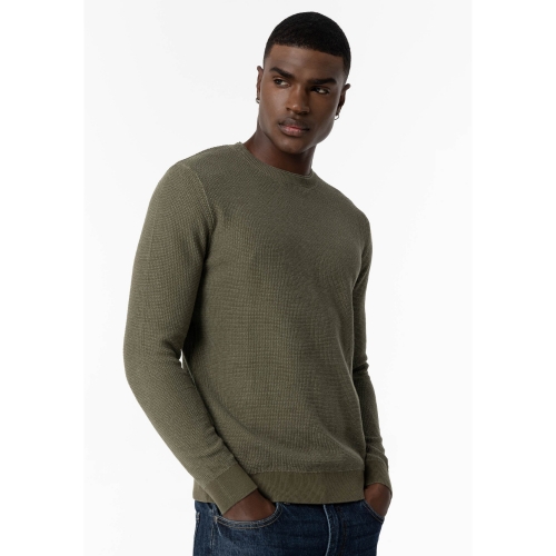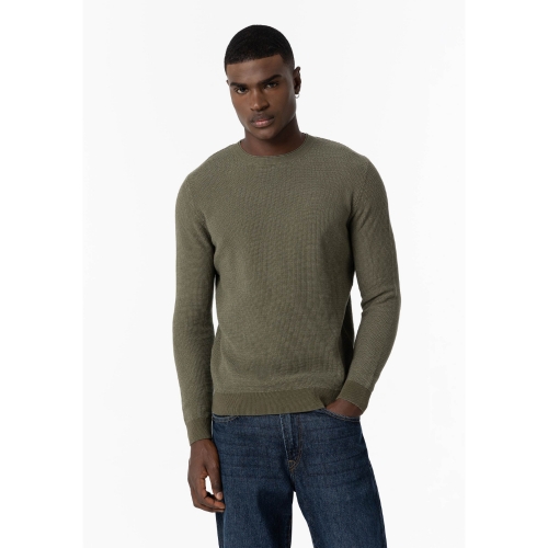 Jersey de punto con textura de cuello redondo doble y manga larga.