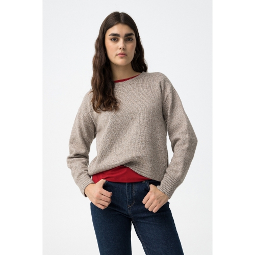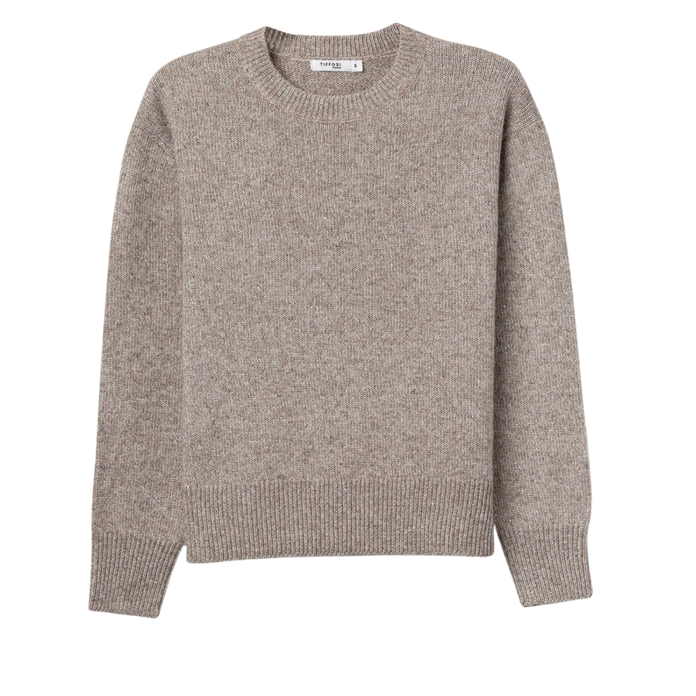 Jersey regular fit de punto con lana e hilo metálico insertado. Cuello redondo, manga larga y acabados de canalé.