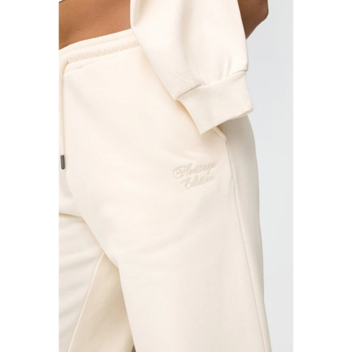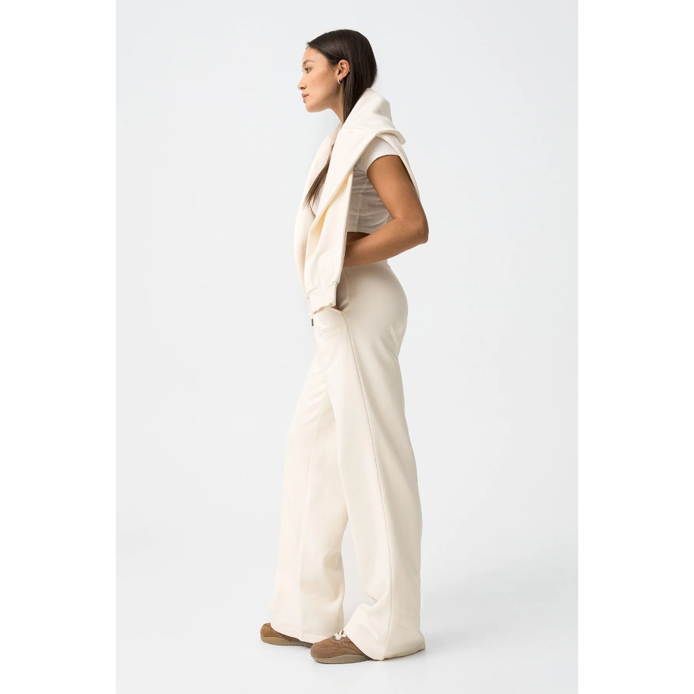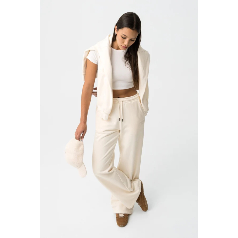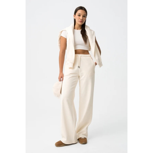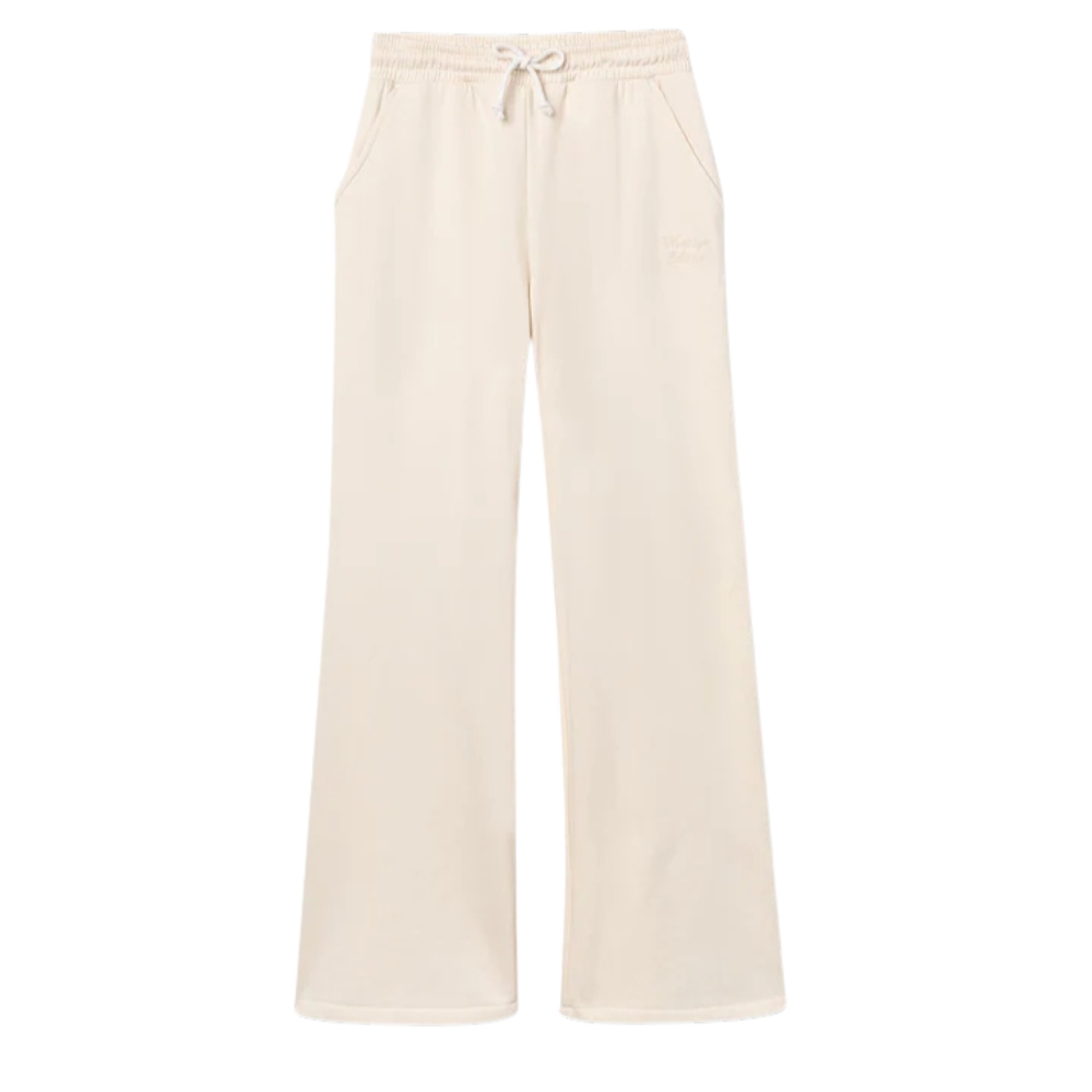 Pantalones wide leg en algodón. Cintura media con cinturilla elástica y cordón ajustable. Bolsillos laterales y pierna ancha. Detalle de bordado en el bolsillo frontal.