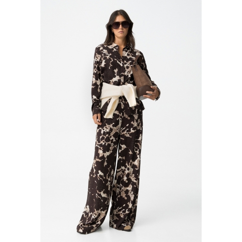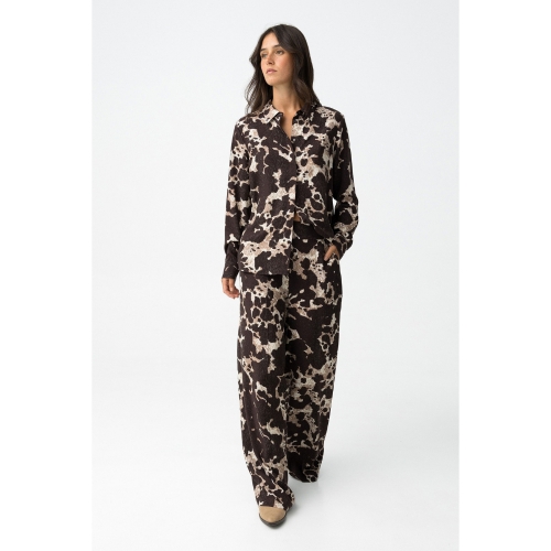 Pantalones palazzo con estampado animal all over, dos bolsillos frontales y cierre lateral de cremallera.100% VISCOSE