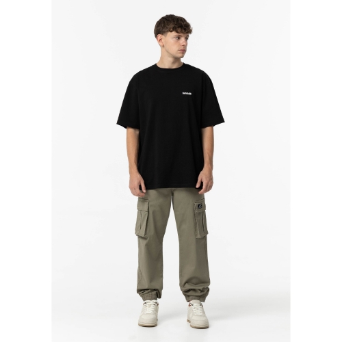 Pantalón relaxed fit con cinturilla elástica y cordón ajustable. Bolsillos laterales tipo cargo. Acabado puño en bajo.