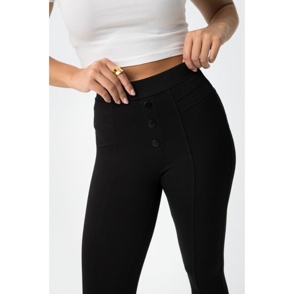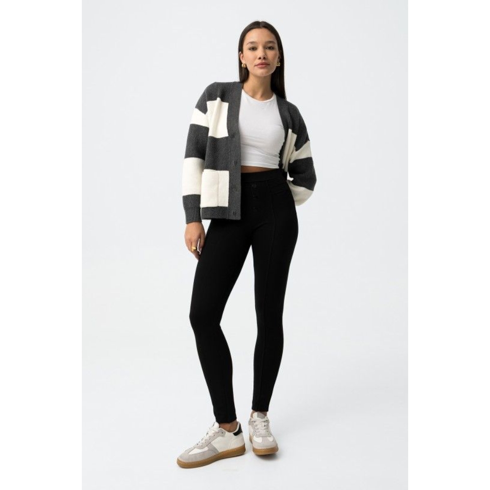 Leggings skinny fit a cuadros. Cintura alta con tres botones frontales. Costuras verticales. Tejido elástico.
