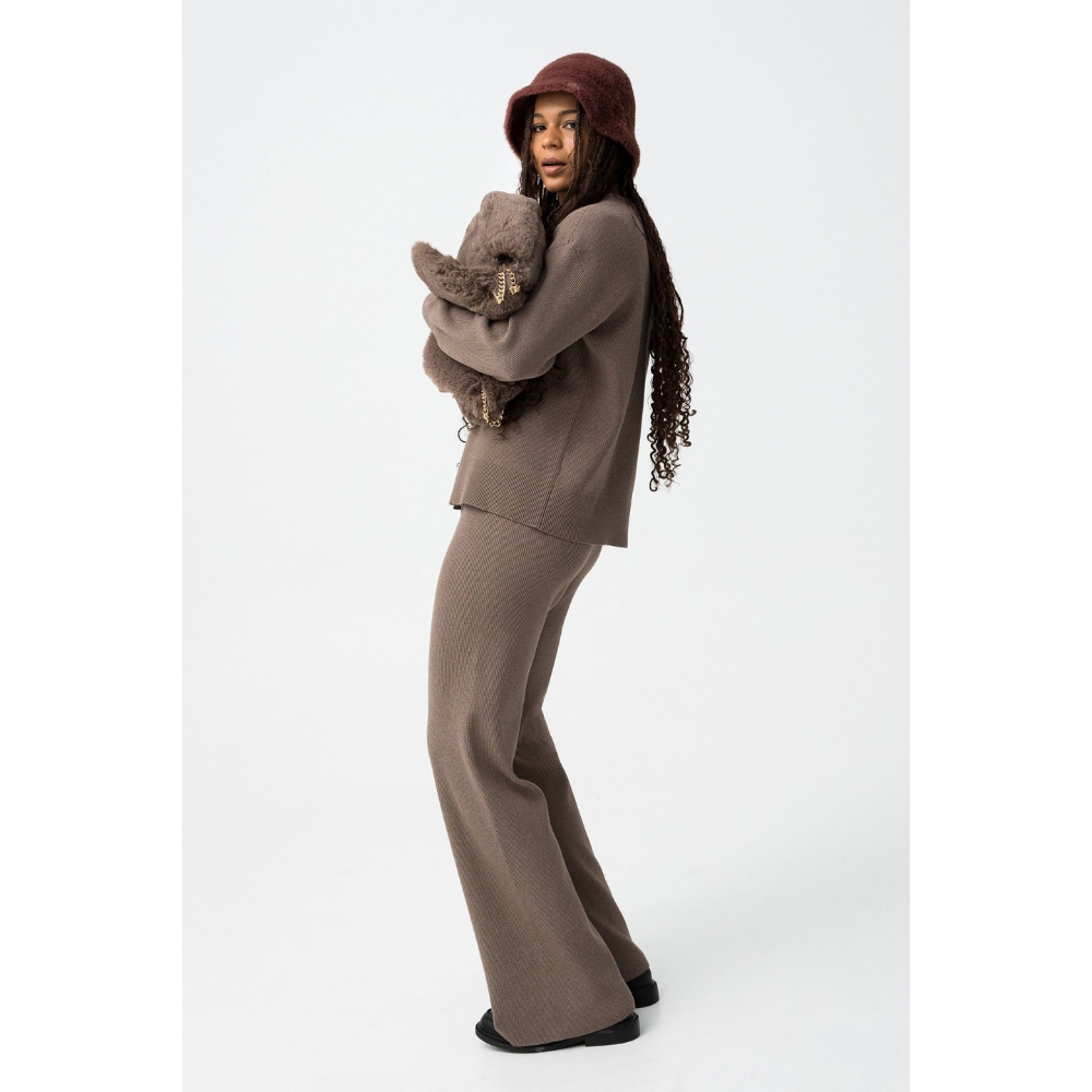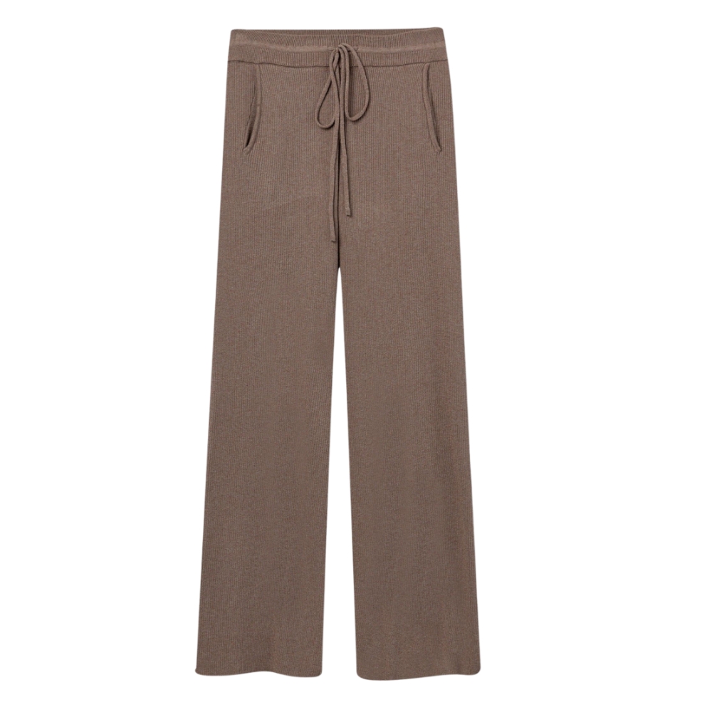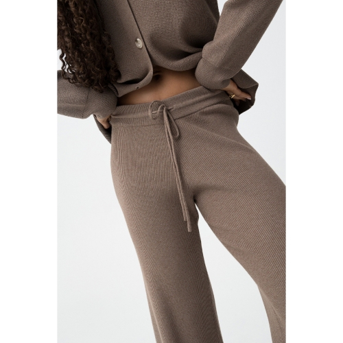 Pantalones straight de punto canalé con cordón en la cintura.58% VISCOSE 29% POLYESTER 13% POLYAMIDE