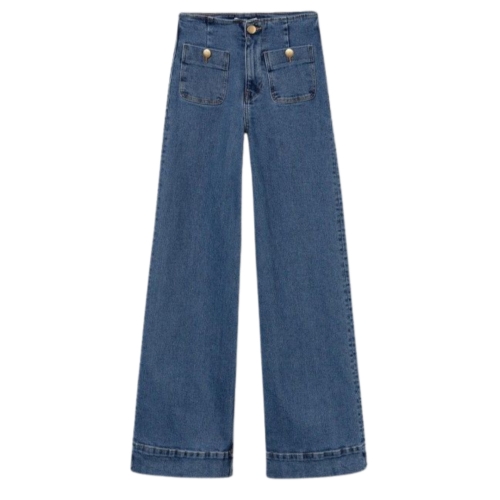 Vaqueros con bolsillos de parche. Cierre frontal de cremallera con botón metálico.99% CO 1% EL