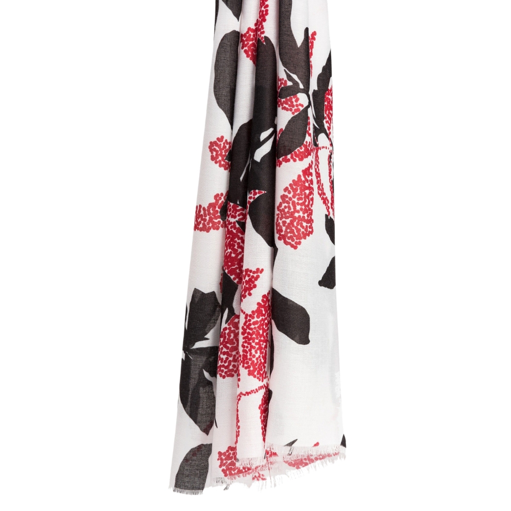 Pañuelo rectangular con estampado tricolor y acabado deshilachado.100% POLYESTER