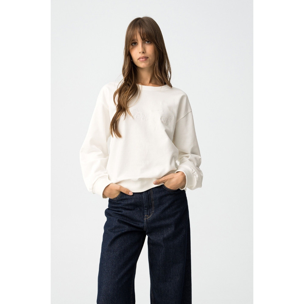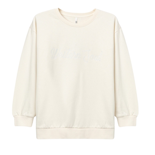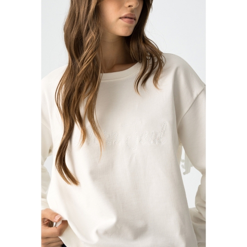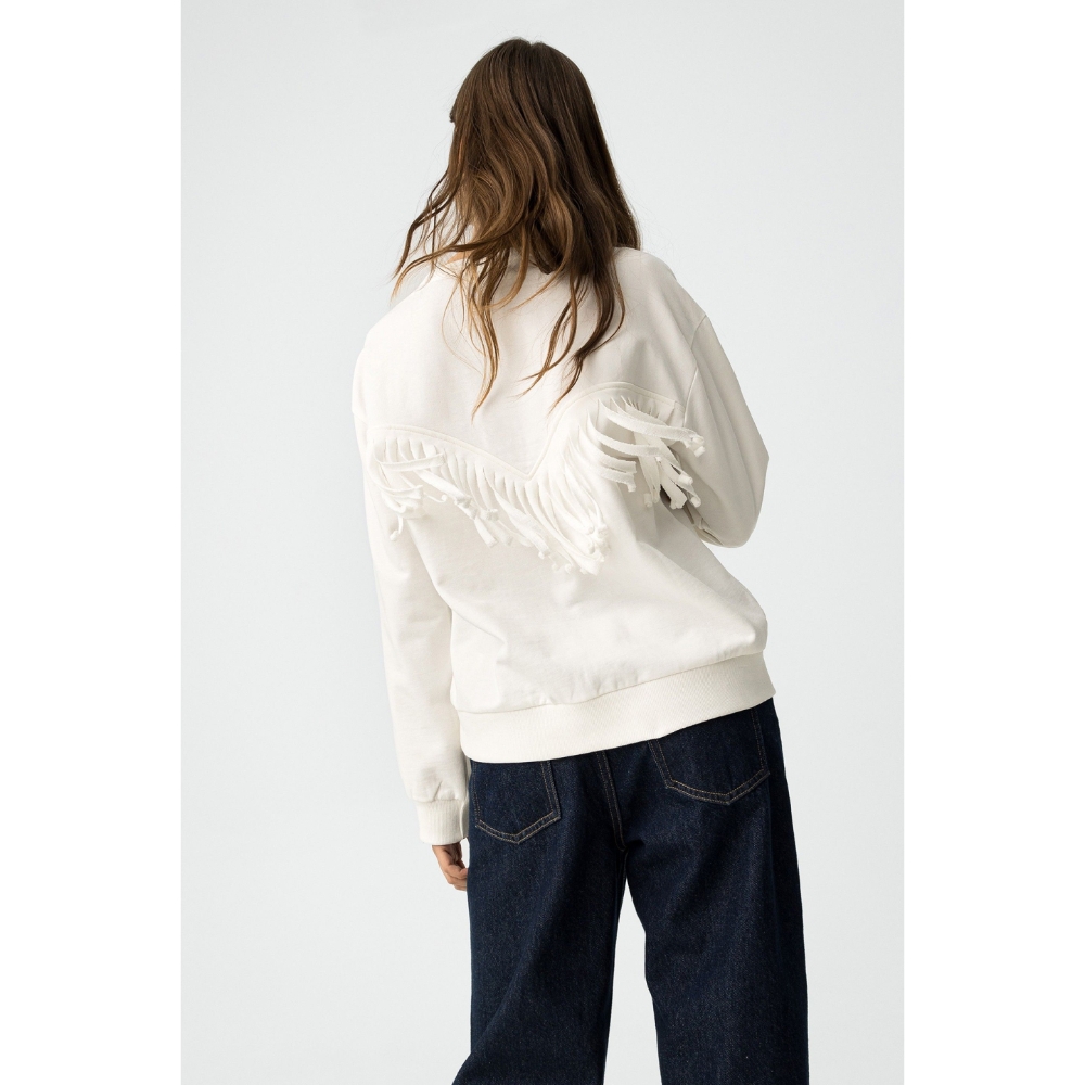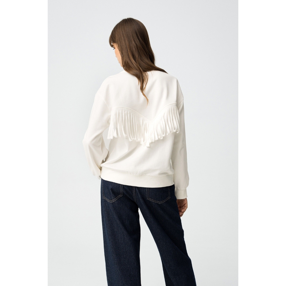Sudadera regular fit con mensaje bordado y flecos en la espalda. Escote redondo, manga larga y acabados en canalé. Interior afelpado.80% COTTON 20% POLYESTER