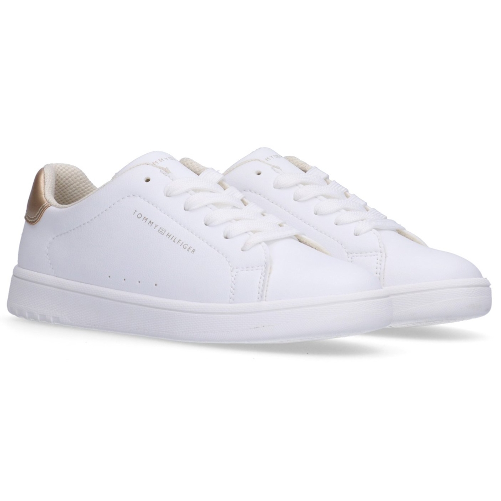Zapatilla estilo casual con tonos metalizados. Color blanco