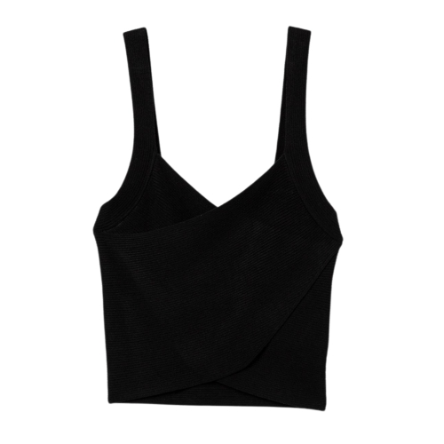 Top corto con escote cruzado y tirantes.