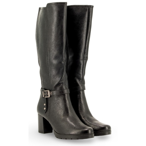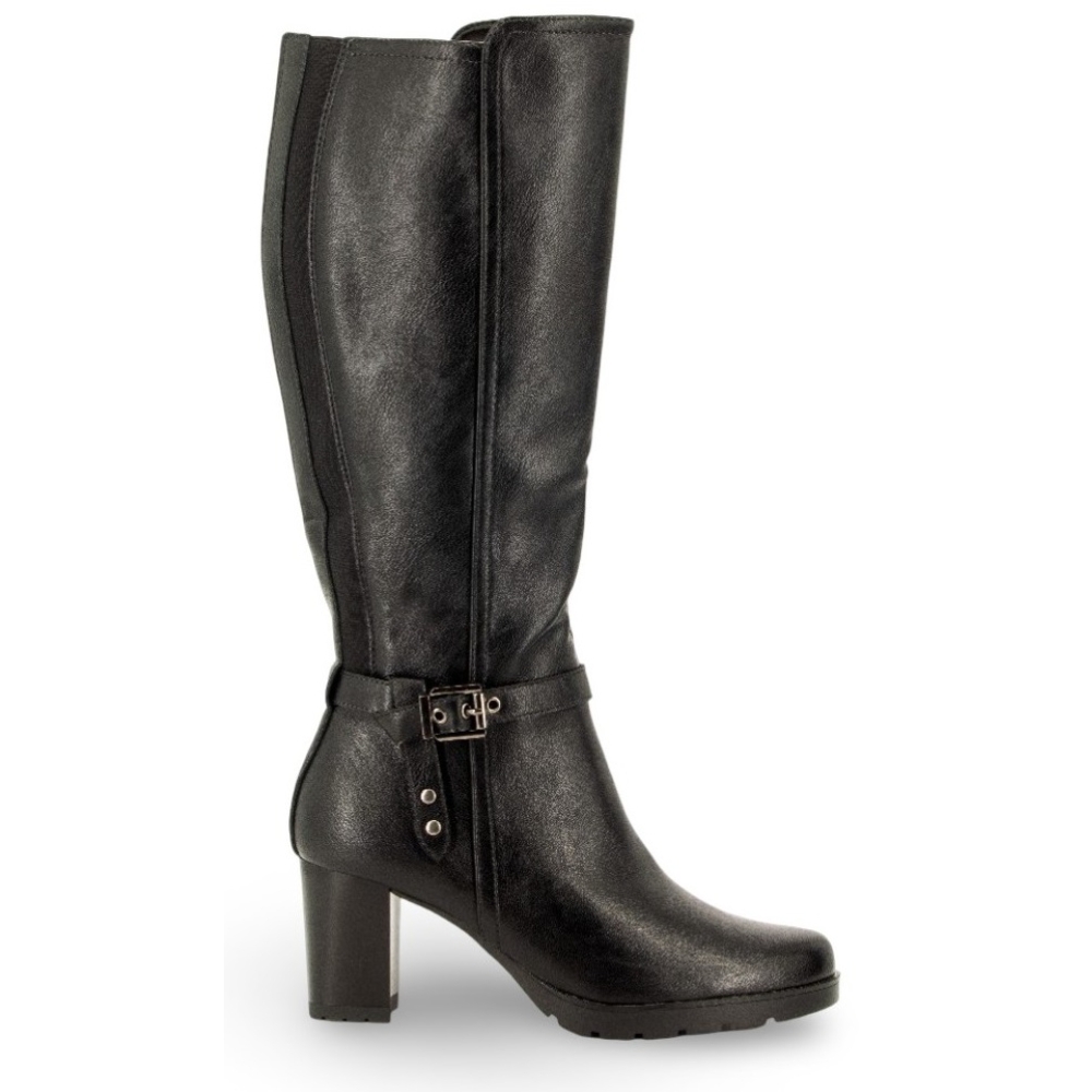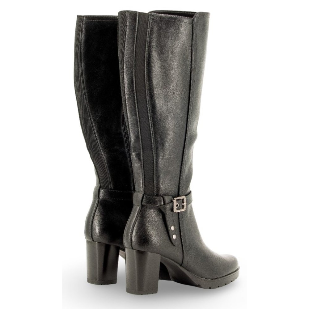 Bota con tacon alto al tono. Cierre con cremallera. Color negro