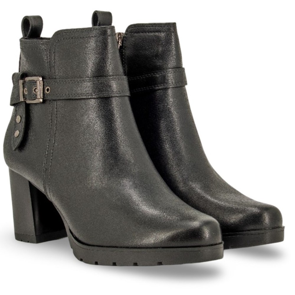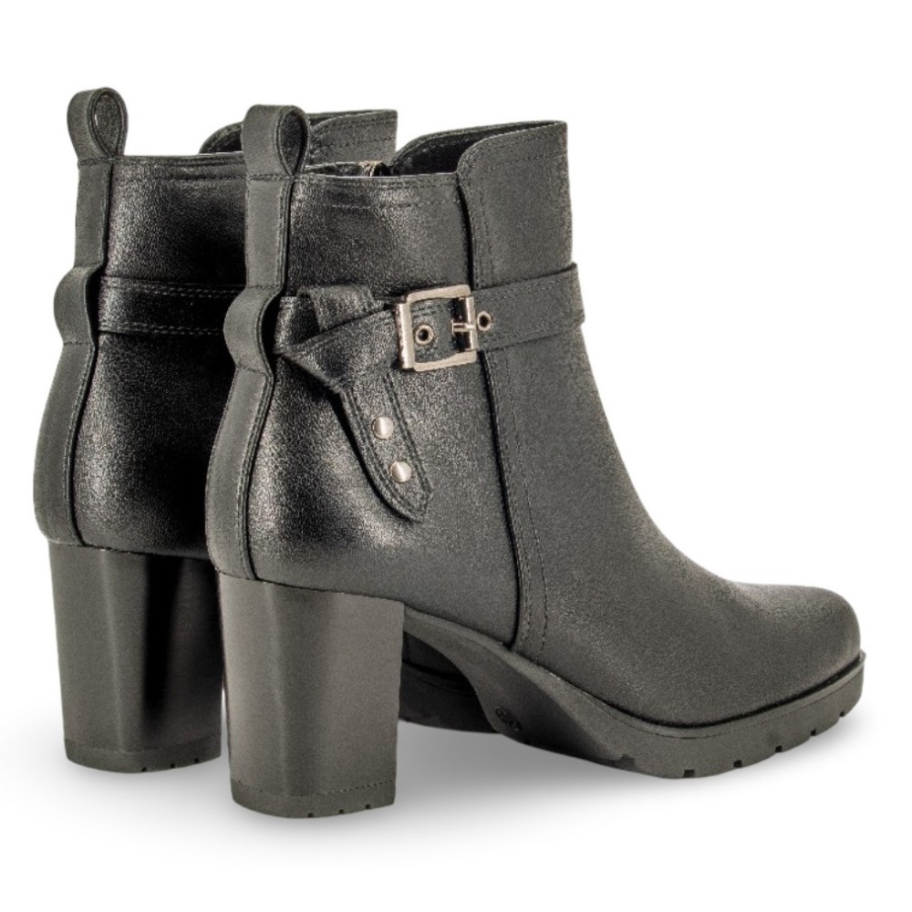 Botin con tacon alto para mujer. Fabricado en material sintético de gran calidad con cremallera lateral. Color negro