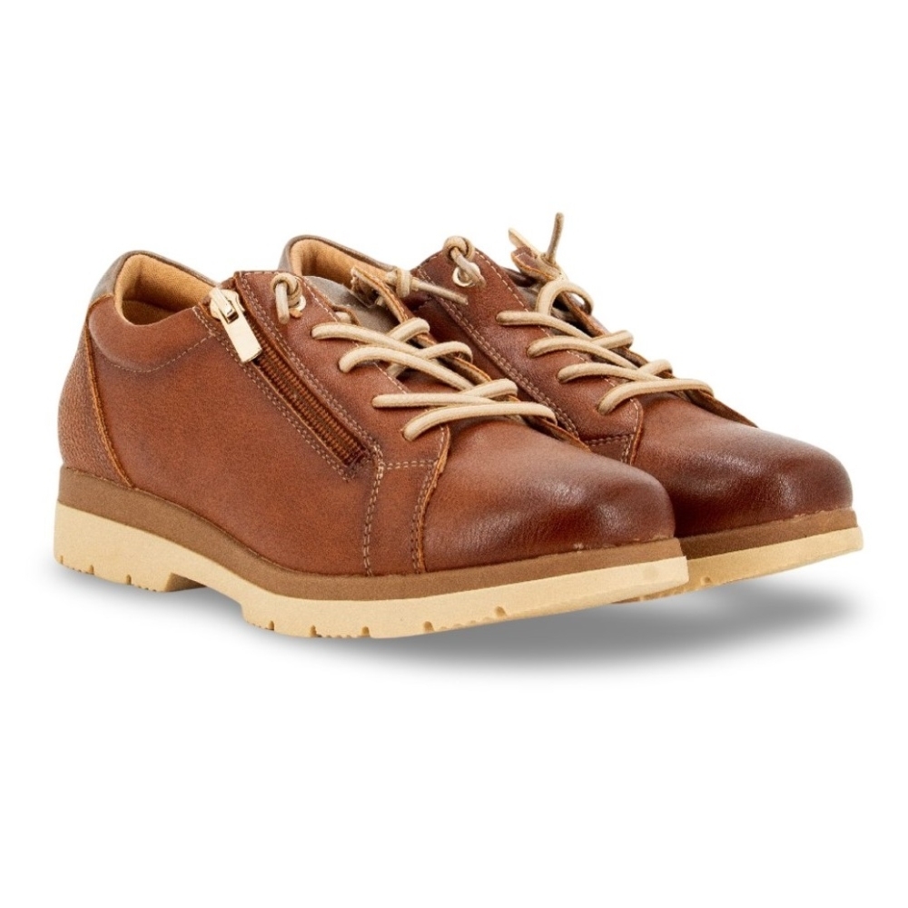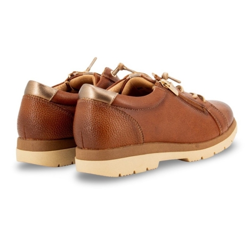 Zapato estilo confort con cordón y cremallera lateral para mujer. Color cuero