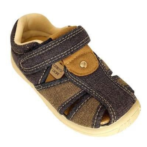 Sandalia fabricada en material textil transpirable para niño. Color marino y beig