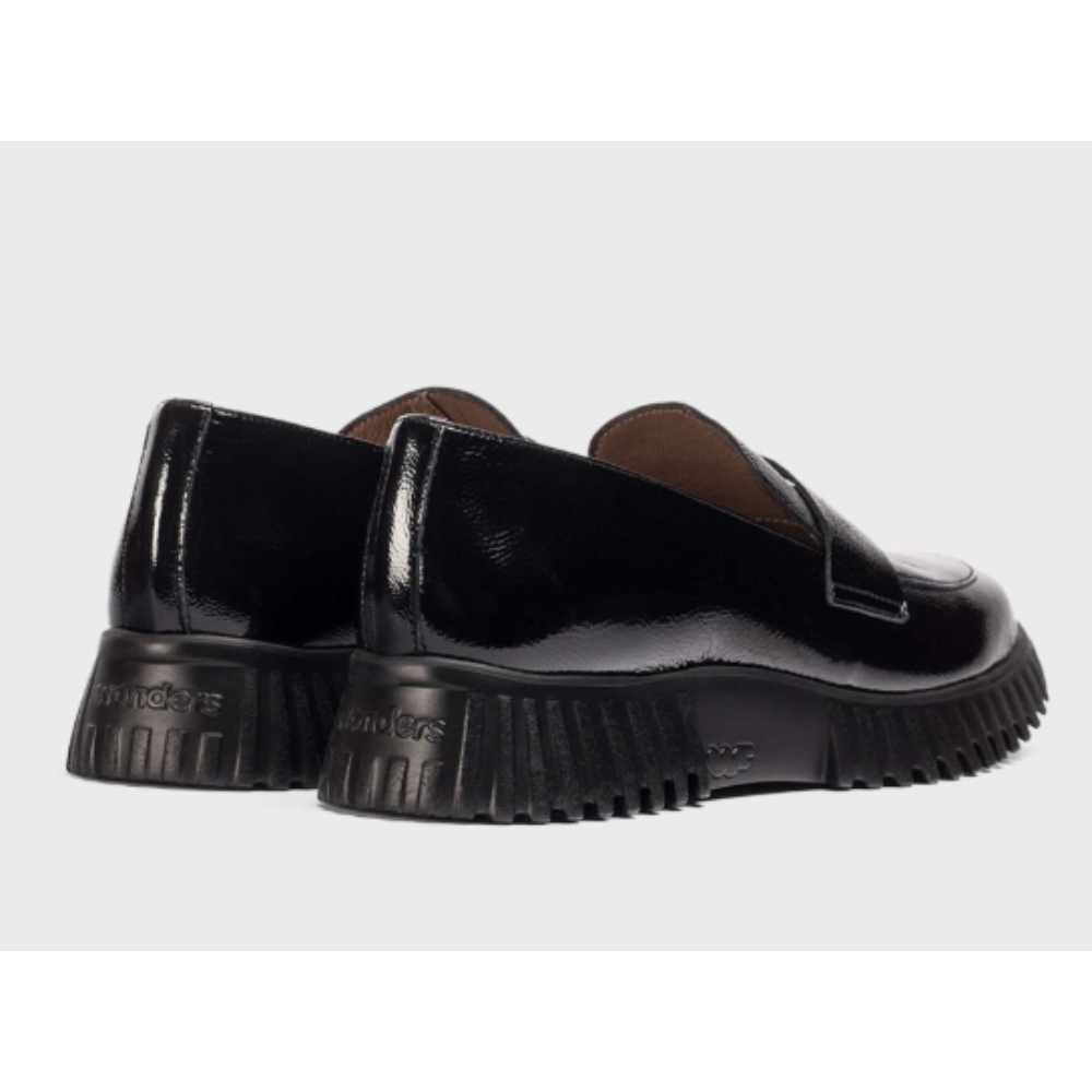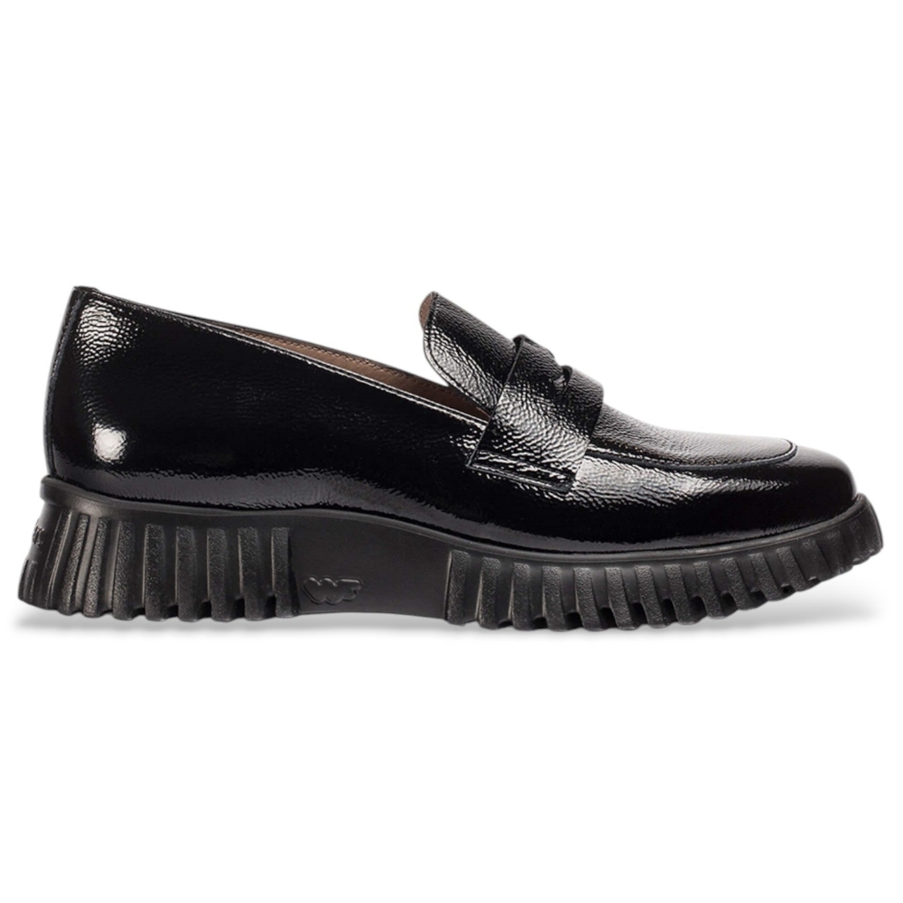 Mocasines FLEXFLY 02 fabricados en piel charol negra. Con construcción de mocasín clásico, mejorado con un toque deportivo y a la moda. Detalle de antifaz al mismo tono y piel que el zapato. Con punta redonda. Su suela, creada con tecnología WondersFly™ by XL EXTRALIGHT®, garantiza una ligereza excepcional y un confort extraordinario. Además, la plantilla interior extraíble de MemoryGel se adapta perfectamente al pie, proporcionando comodidad en cada paso. Prepárate para sentir la sensación #YesWeFly. Wonders apuesta por una fabricación responsable avalada por