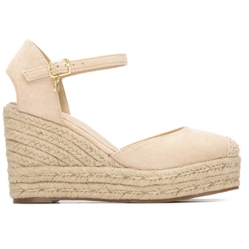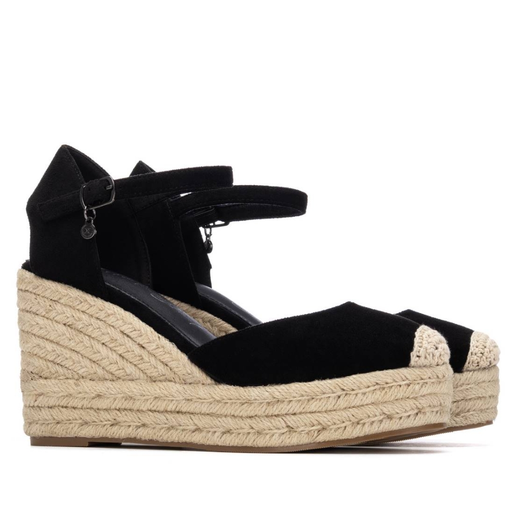Alpargata de mujer, de la marca Xti. Fabricada en suave material textil que aporta confort y ligereza. Cuenta con una cuña de 9 cm con plataforma, forrada en yute, que proporciona altura y estabilidad sin renunciar a la comodidad