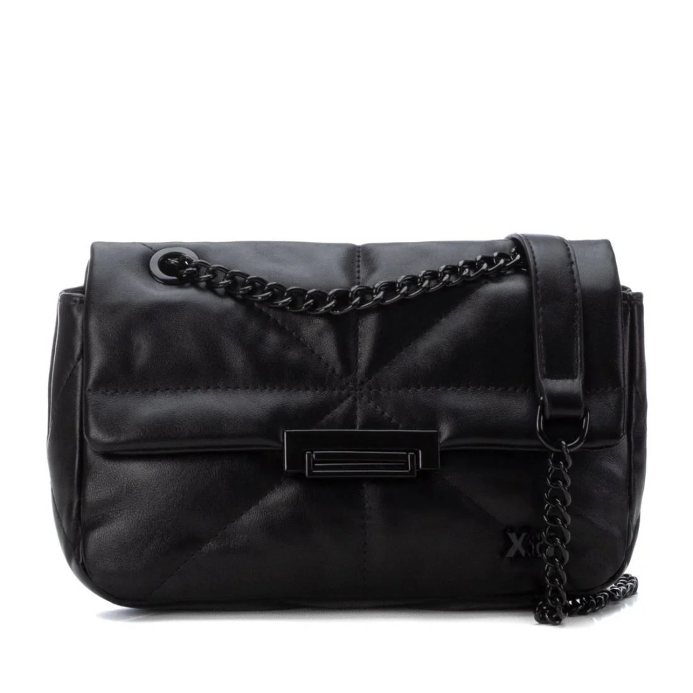 Bolso de vestir pequeño de la marca Xti. Fabricado en material que imita la piel con efecto acolchado marcado por pespunte. Cadena metálica al tono. Cierre mediante botón al tono. Modelo básico para elevar tus looks de invierno, con ese toque de elegancia. Medidas 15x23x6cm