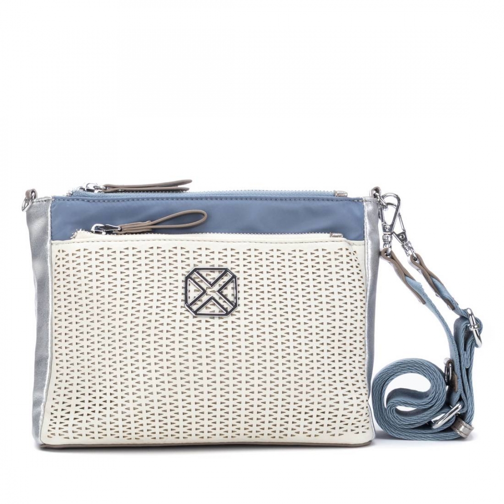 Bolso bandolera de la marca XTI, confeccionado en material  que imita la piel combinado perfectamente con un textil. Incorpora cierre superior con cremallera para mayor seguridad y comodidad
