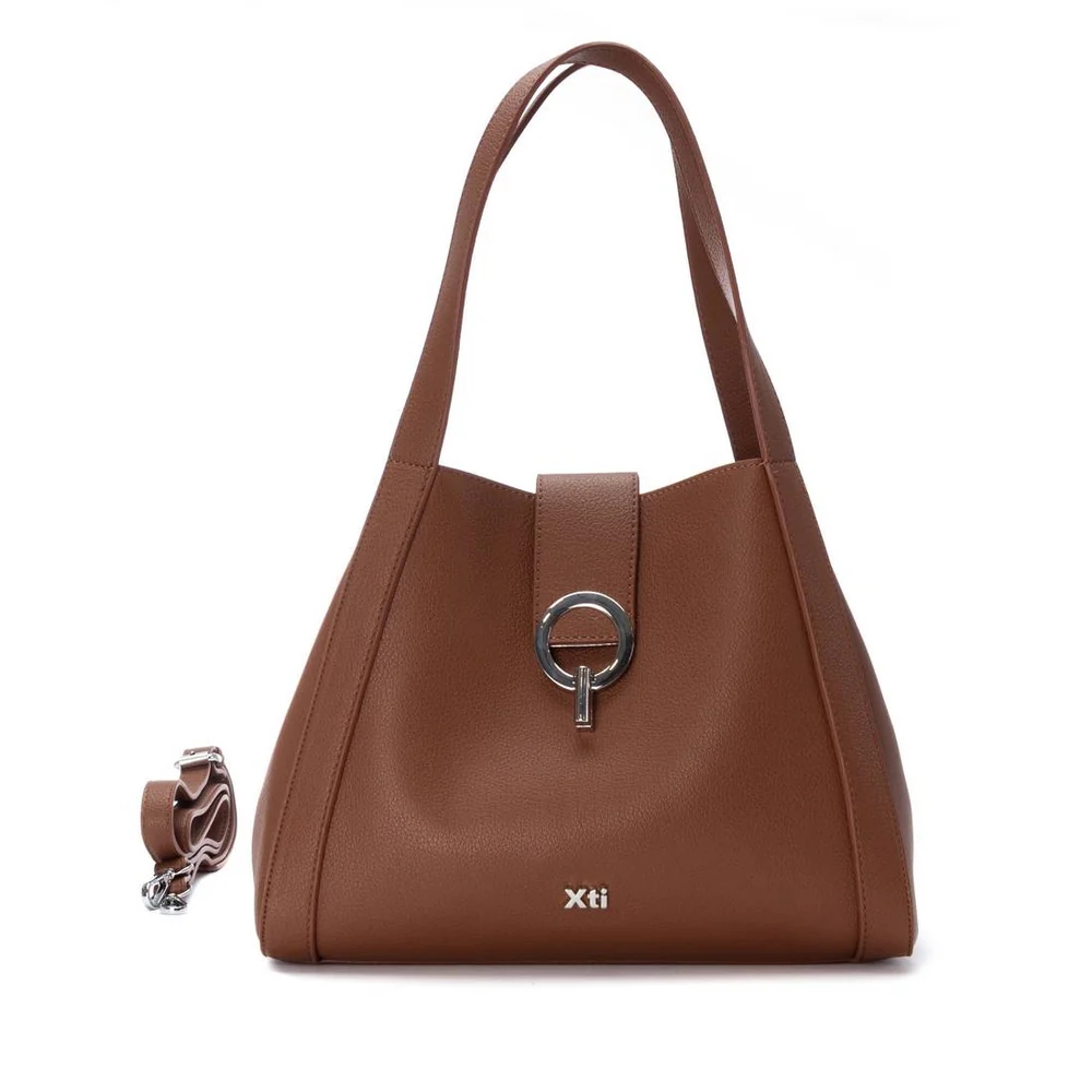 Bolso de mujer de la marca XTI Basic. Confeccionado en material que imita la piel, ideal para el uso diario. Presenta un interior con varios bolsillos y forro textil. Asa de hombro y correa larga regulable. Cierre seguro con cremallera. Medidas: 26 x 32 x 13 cm. Este modelo ha obtenido el certificado vegano por la organización mundial PETA (Organización de los derechos de los animales).