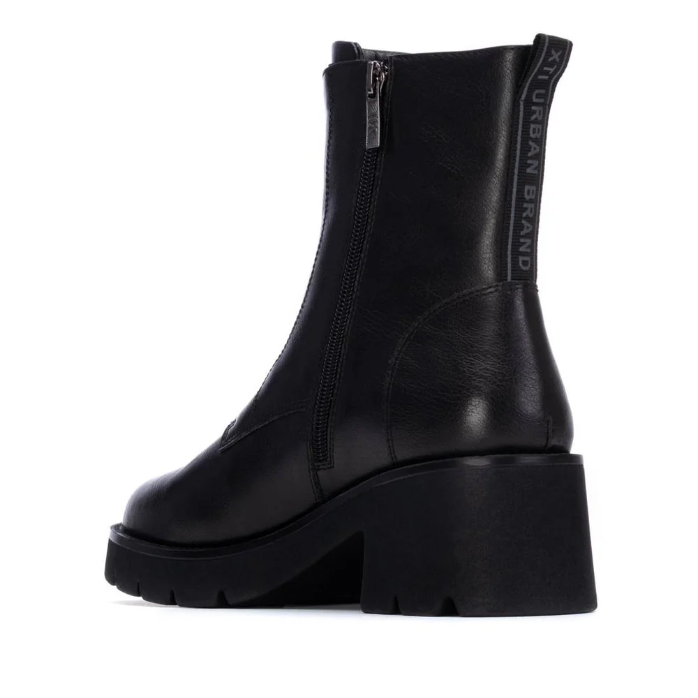 Botín de mujer, de la marca Xti. Fabricado en material que imita la piel, con un diseño elegante y práctico. Este modelo cuenta con una cremallera lateral que facilita su puesta y ajuste. El tacón ancho de 5 cm, fabricado en goma, ofrece una gran comodidad y estabilidad durante todo el día. Su estilo versátil lo hace ideal para combinar con cualquier tipo de look, desde casual hasta más formal. Además, su suela antideslizante asegura seguridad y confort en cada paso. Perfecto para quienes buscan un Botín moderno y cómodo para el día a día. Plantilla extraíble. Este modelo ha obtenido el certificado vegano por la organización mundial PETA (Organización de los derechos de los animales).