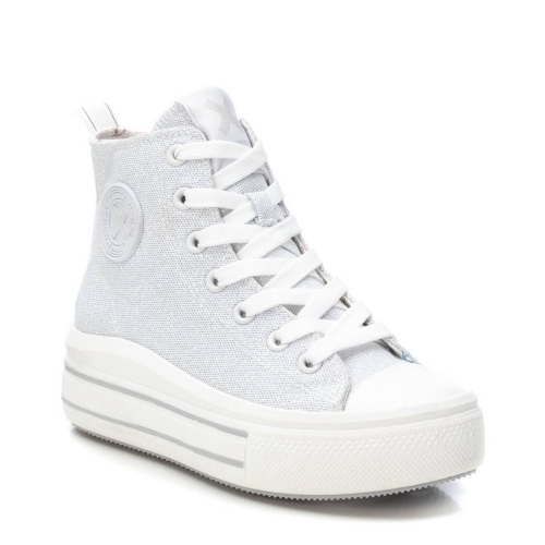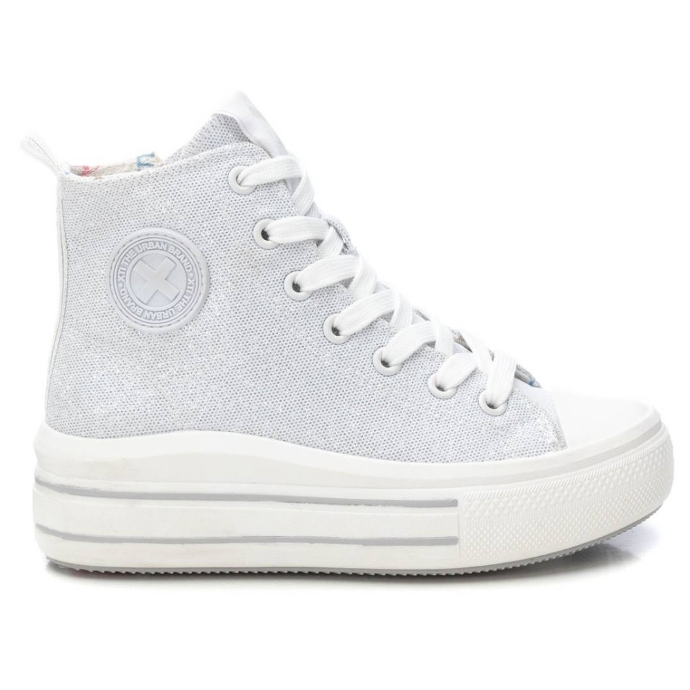 Zapatilla de niña, de la marca Xti Kids. Fabricada en lona metalizada. Cierre cremallera lateral y cordones ajustables. Imprescindible de esta temporada. Tirador trasero para facilitar la puesta. Piso con volumen, cómoda planta y gruesa suela de goma antideslizante. Este modelo ha obtenido el certificado vegano por la organización mundial PETA (Organización de los derechos de los animales).