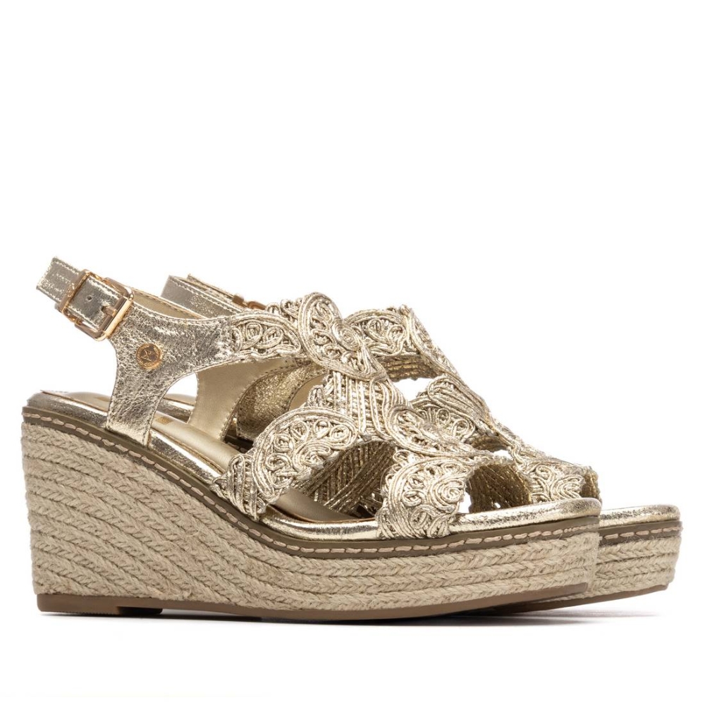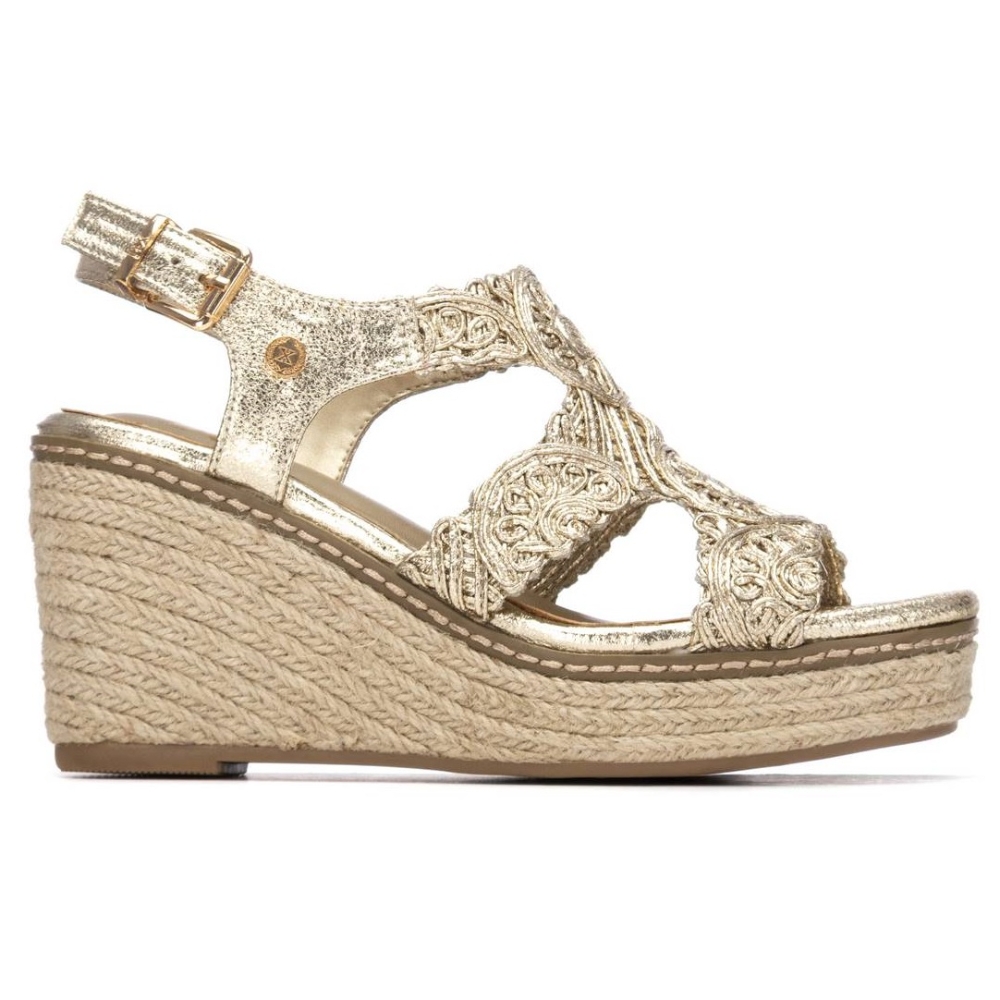 Sandalia de mujer de la marca Xti, fabricada en textil con efecto metalizado, aportando un toque elegante y actual. Diseño que sujeta muy bien el pie, gracias a sus tiras estratégicamente colocadas