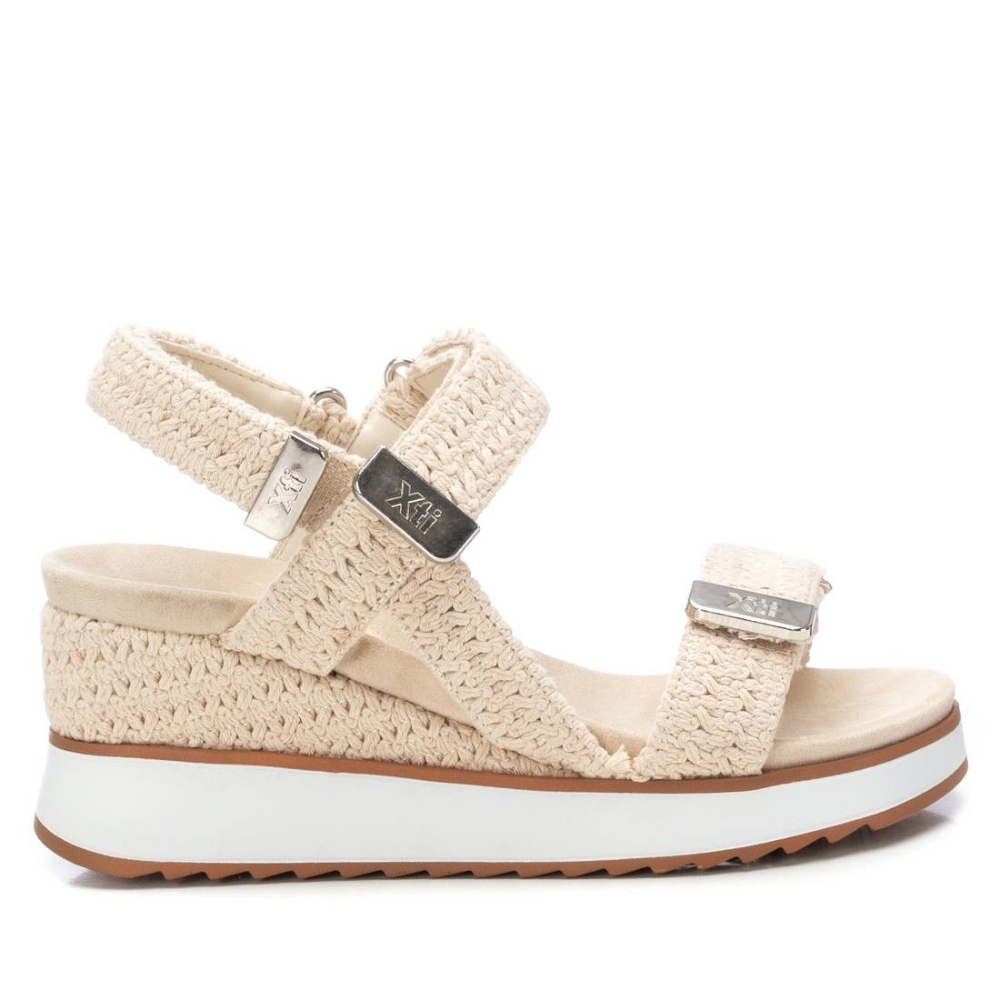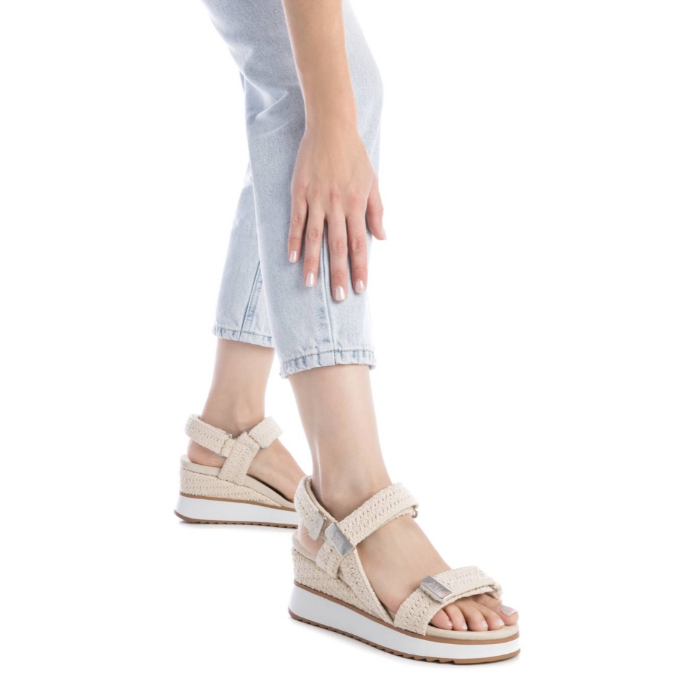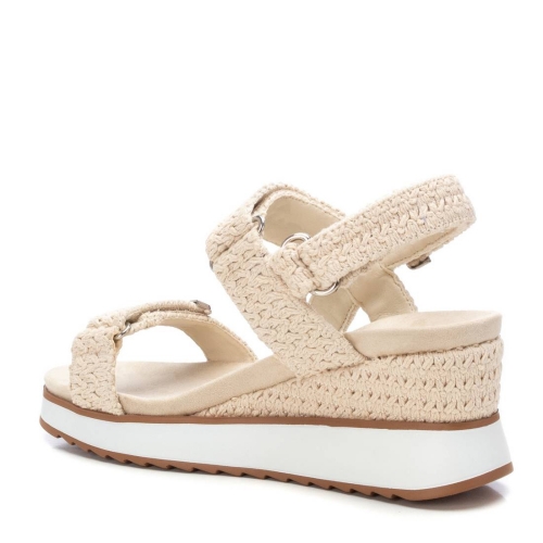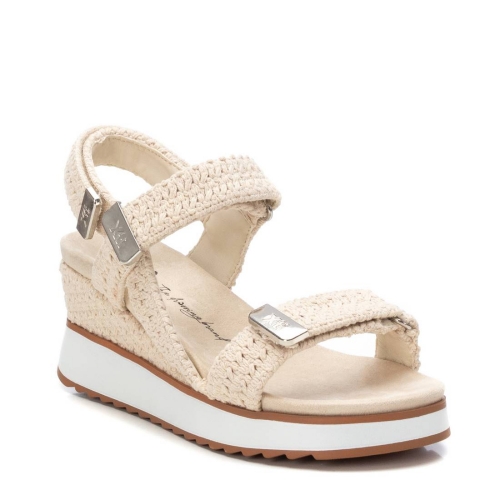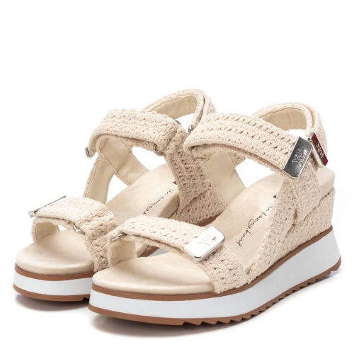 Sandalia de mujer con cuña, de la marca Xti. Fabricada en material textil de crochet, se convertirá en uno de tus esenciales de esta temporada. Detalles metalizados para un mejor acabado. Cierre mediante tira adherente. Planta bios. Cuña de 7 cm con suela de goma antideslizante. Este modelo ha obtenido el certificado vegano por la organización mundial PETA (Organización de los derechos de los animales).