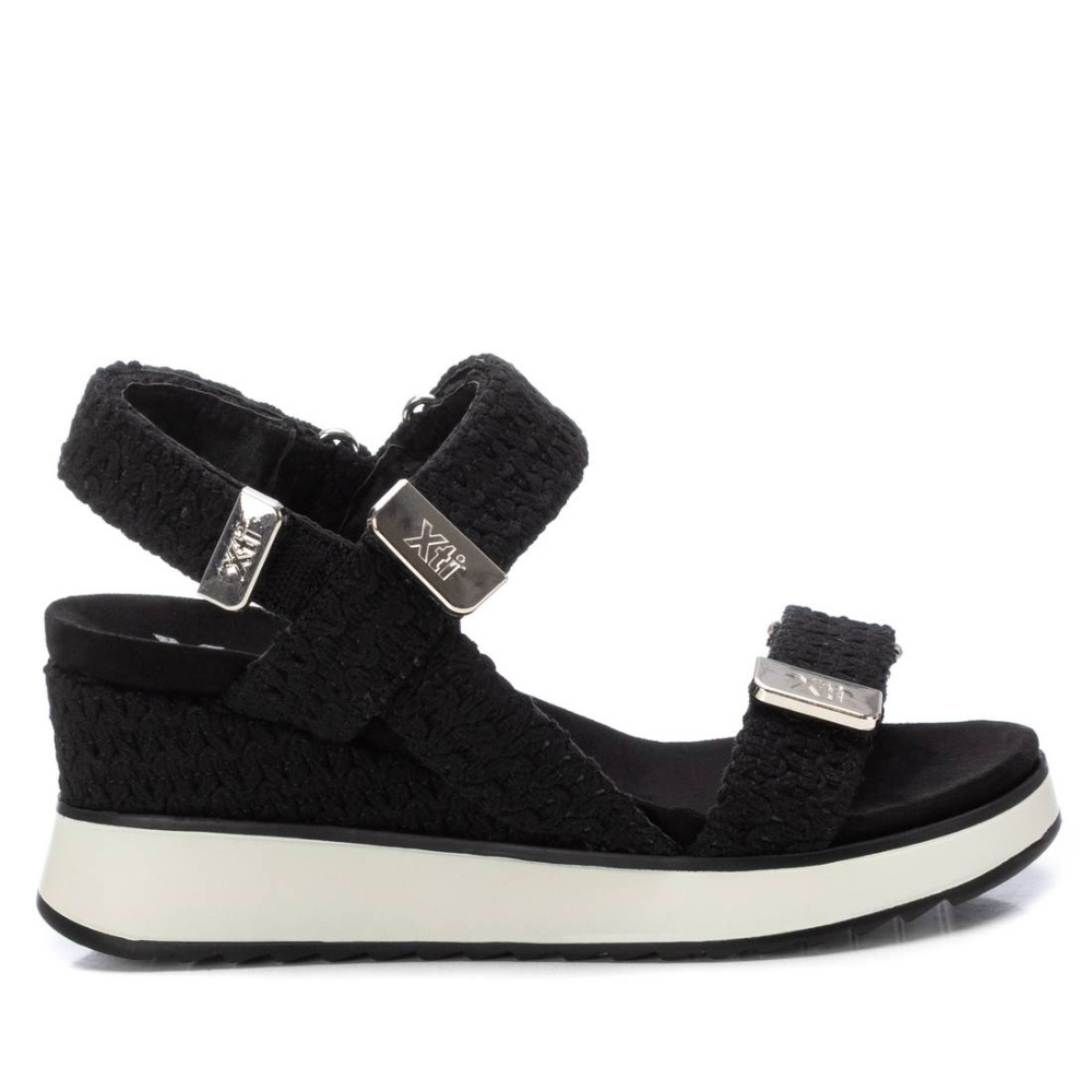 Sandalia de mujer con cuña, de la marca Xti. Fabricada en material textil de crochet, se convertirá en uno de tus esenciales de esta temporada. Detalles metalizados para un mejor acabado. Cierre mediante tira adherente. Planta bios. Cuña de 7 cm con suela de goma antideslizante. Este modelo ha obtenido el certificado vegano por la organización mundial PETA (Organización de los derechos de los animales).