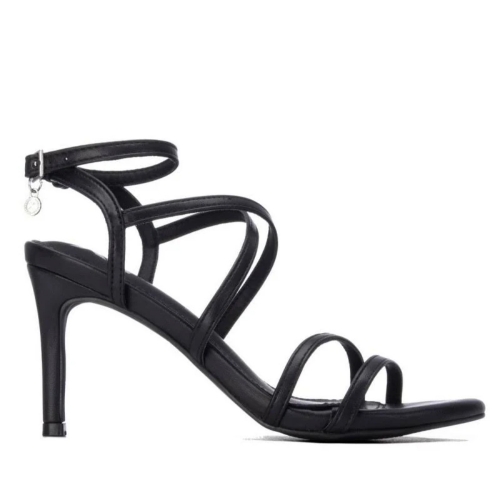 Sandalia de mujer, de la marca Xti. Fabricada en material que imita la piel, presenta un delicado diseño de finas tiras que envuelven el pie, aportando ligereza y elegancia. Tacón fino de 8 cm