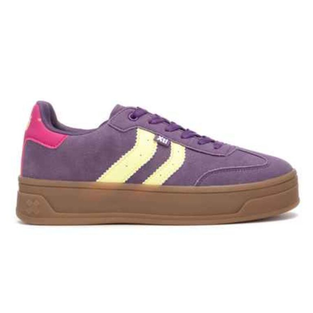 Zapato de mujer, de la marca Xti. Fabricado en material que imita al serraje, con un diseño de inspiración retro y deportiva, ideal para combinar con looks urbanos y desenfadados.