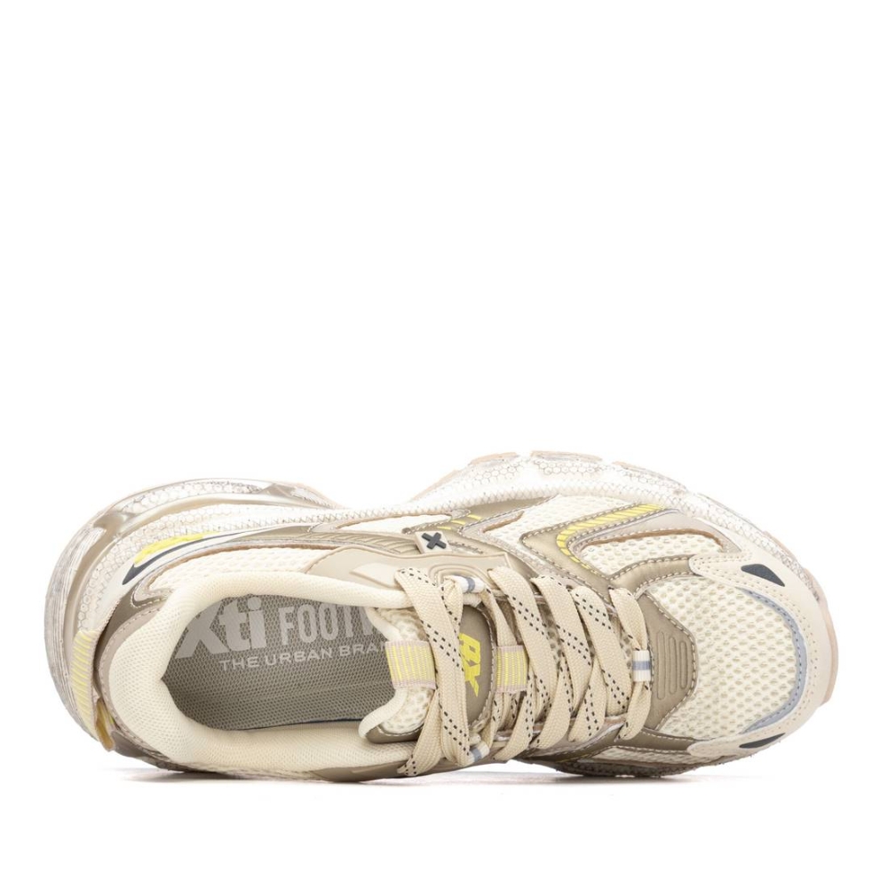 Zapatilla de mujer, de la marca Xti. Fabricada en material textil combinado con detalles en material que imita la piel, su diseño se inspira en las siluetas más icónicas de la moda deportiva. Presenta una suela voluminosa que aporta amortiguación y un aire contemporáneo.