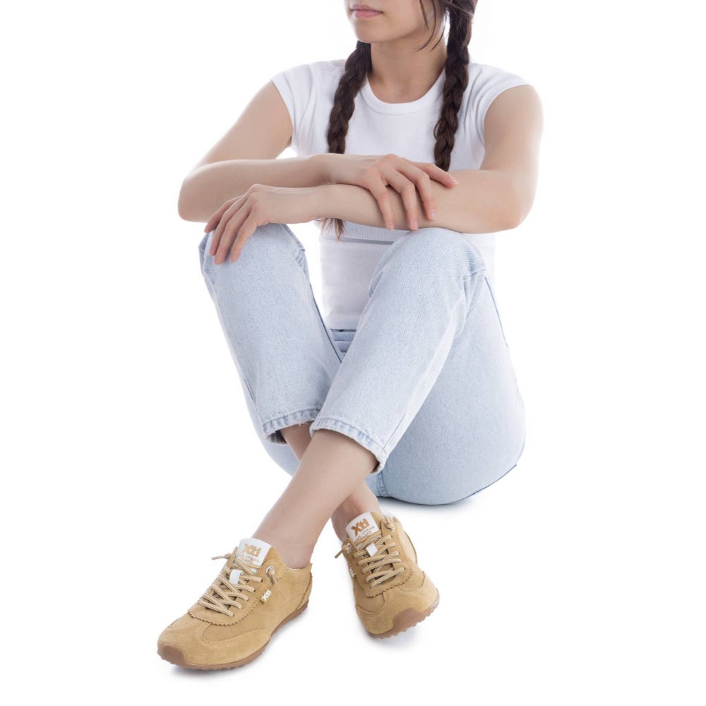 Zapatilla de mujer, de la marca Xti. Fabricada en serraje, con diseño plano y cómodo, ideal para los meses de primavera y verano. Destaca por su corte con acabado festón, que aporta un toque original y delicado al modelo. Incorpora suela antideslizante para mayor seguridad y confort en cada paso.