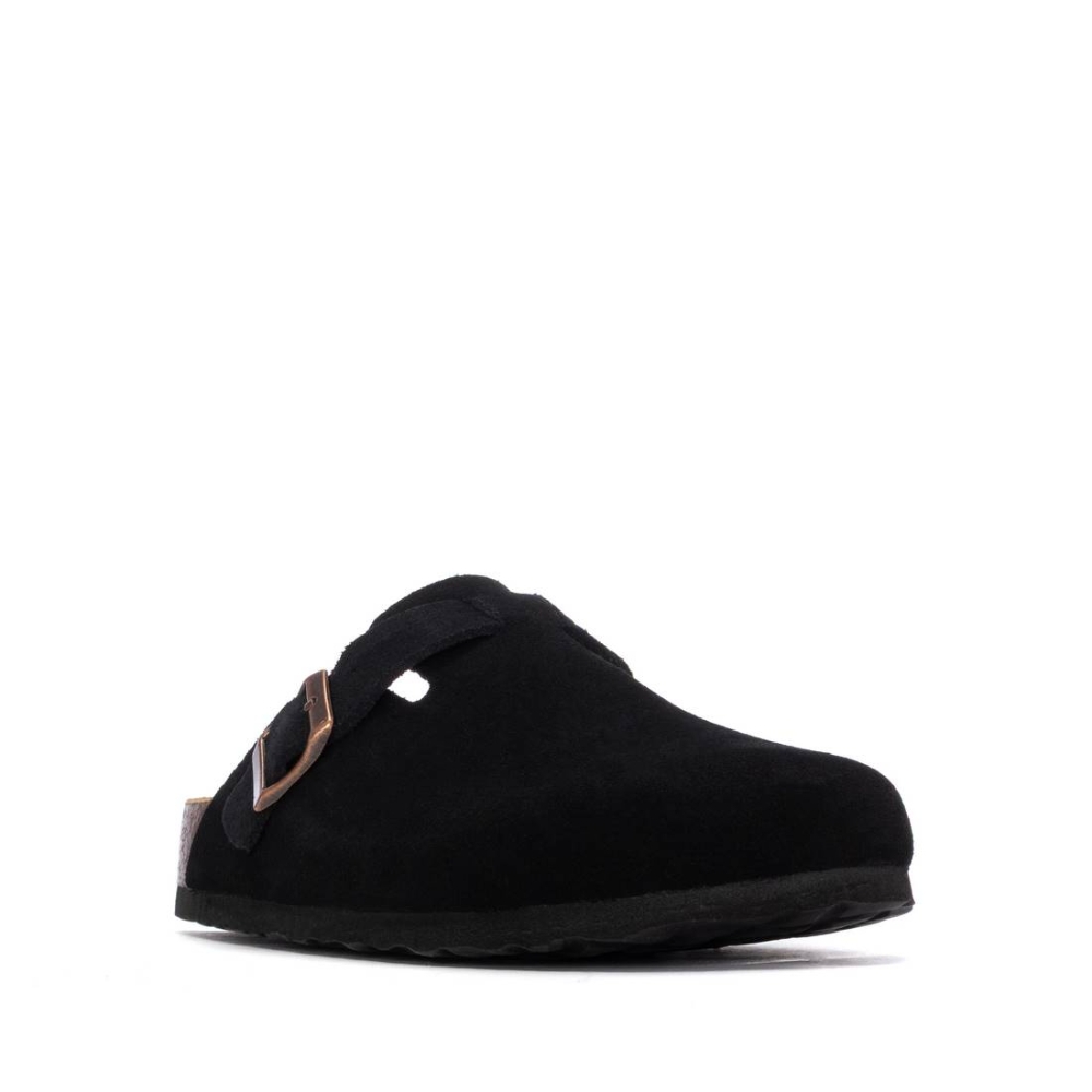 Zueco de mujer, de la marca Xti. Fabricado en material serraje, con diseño destalonado que aporta frescura y facilidad de uso. Incorpora una suela tipo bio, que se adapta al pie para una pisada cómoda