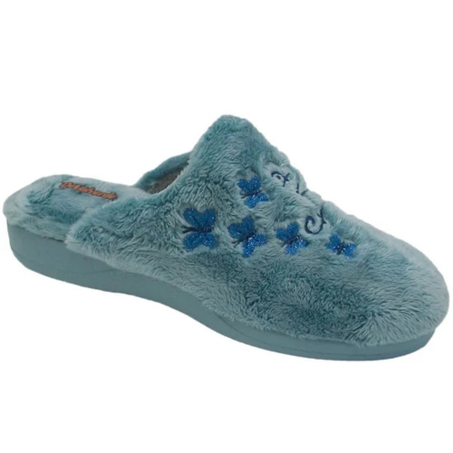 Zapatilla de hogar de la marca Devalverde para mujer. Fabricada en materiales de gran calidad. Color turquesa