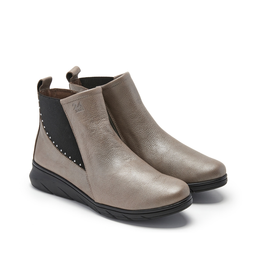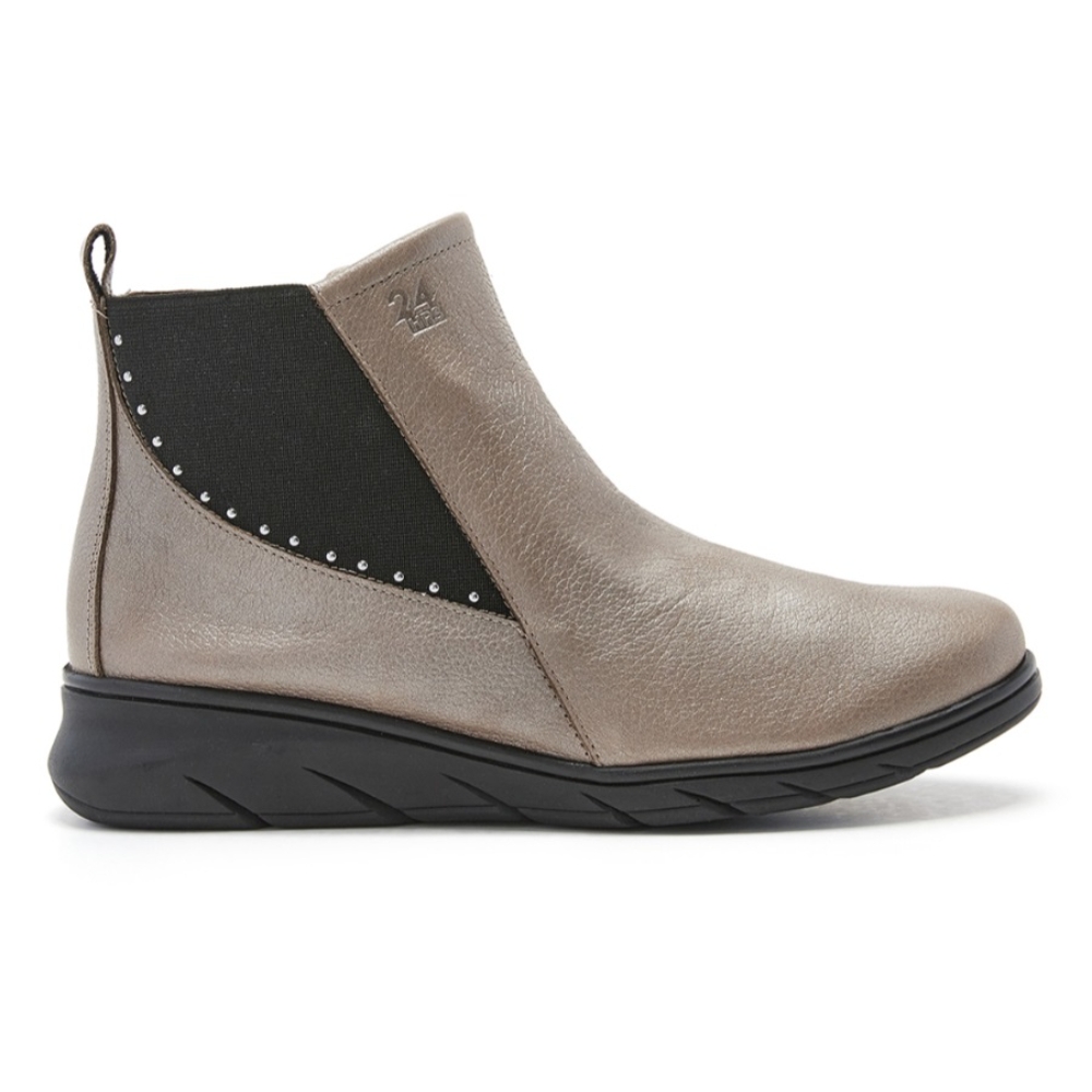 Botín tipo confort con elásticos de la marca 24 horas para mujer. Fabricado en piel de gran calidad con suela comoda y ligera para una mayor amortiguación., Color taupe