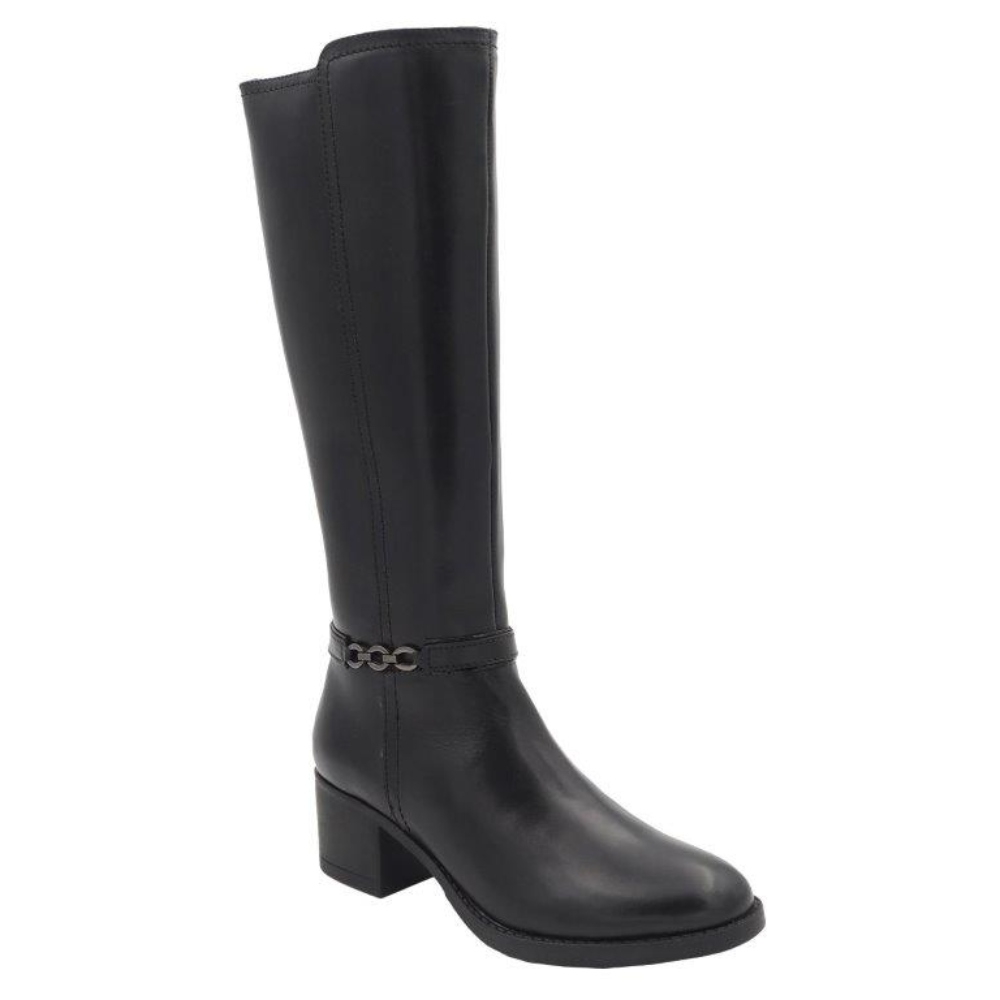 Bota alta con tacón medio de la marca 48 horas para mujer. Fabricada en piel de gran calidad. Color negro