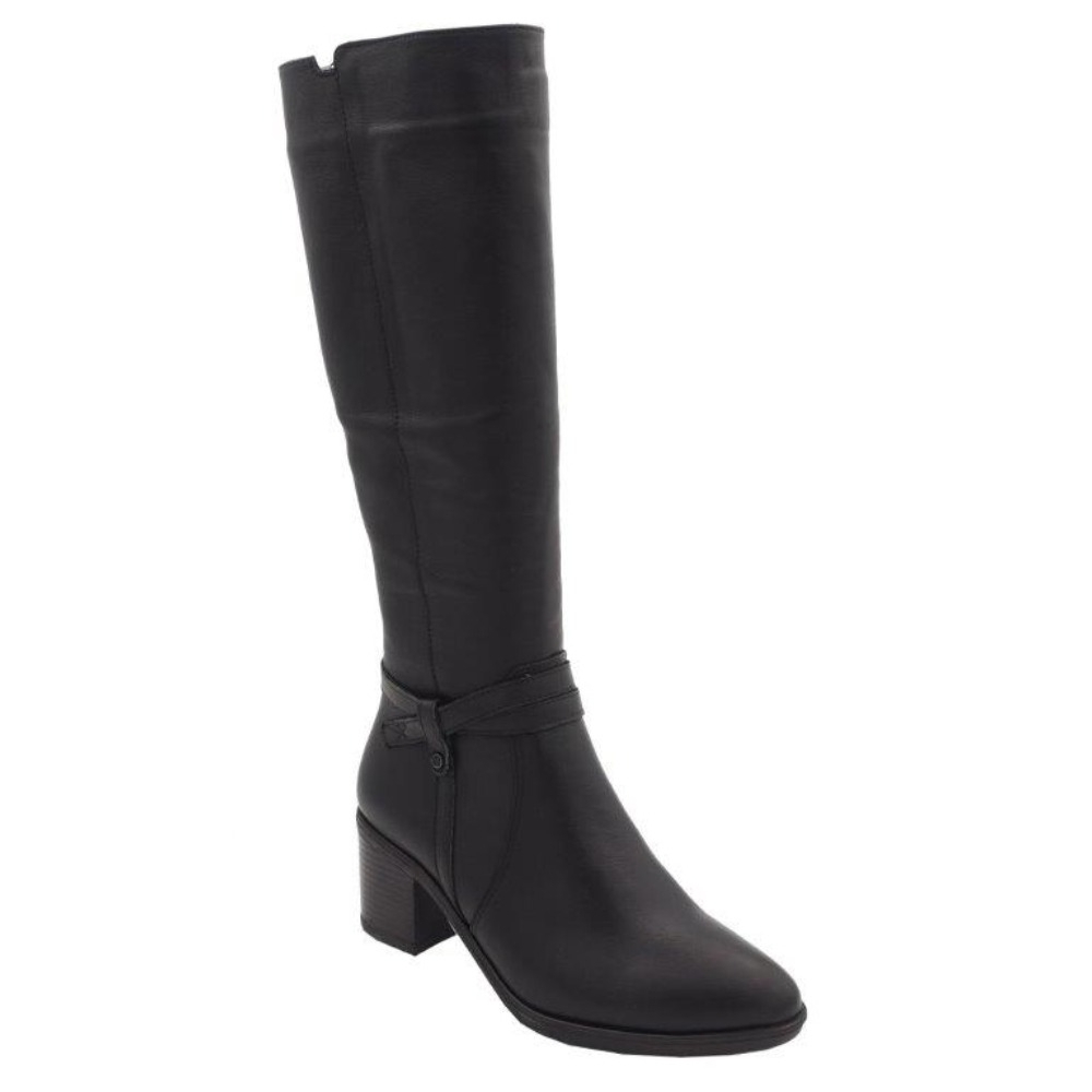Bota alta con tacón de la marca 48 horas para mujer. Fabricada en piel de gran calidad. Color negro