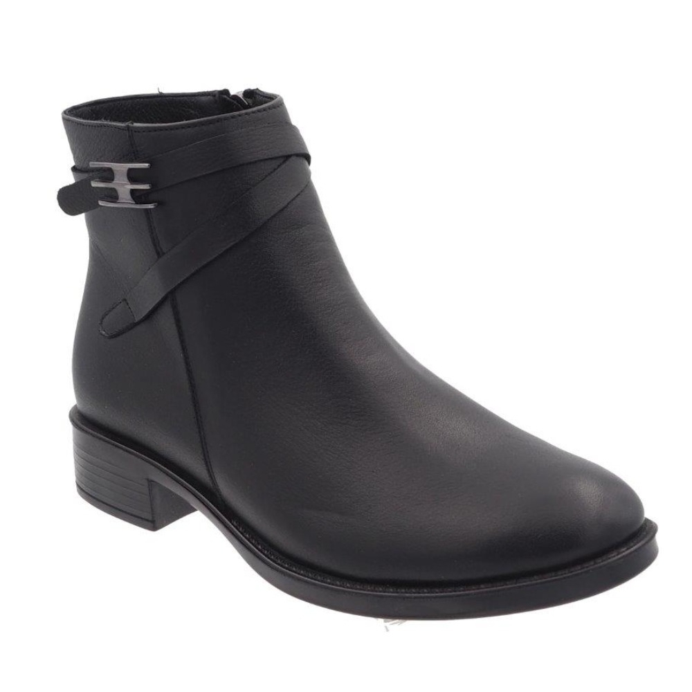 Botin plano de la marca 48 horas para mujer. Fabricado en piel de gran calidad con cremallera lateral. Color negro