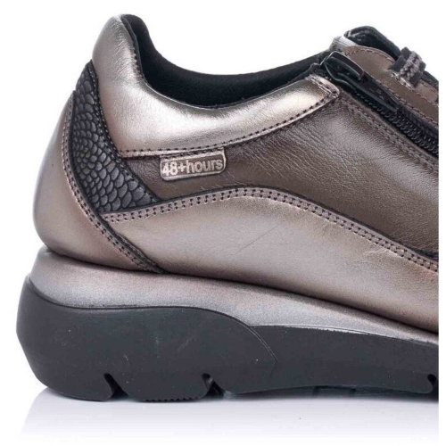 Zapato sport de la marca 48 hours para mujer, realizado en piel lisa de primerísima calidad. Cierre mediante cordón elástico y cremallera lateral que facilita su calce y ajuste al pie. Suela de goma flexible y antideslizante.Medidas: Cuña 5 cm